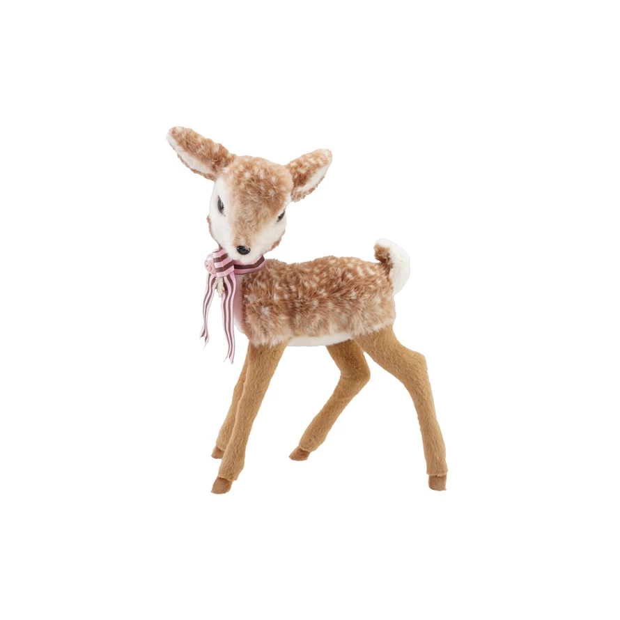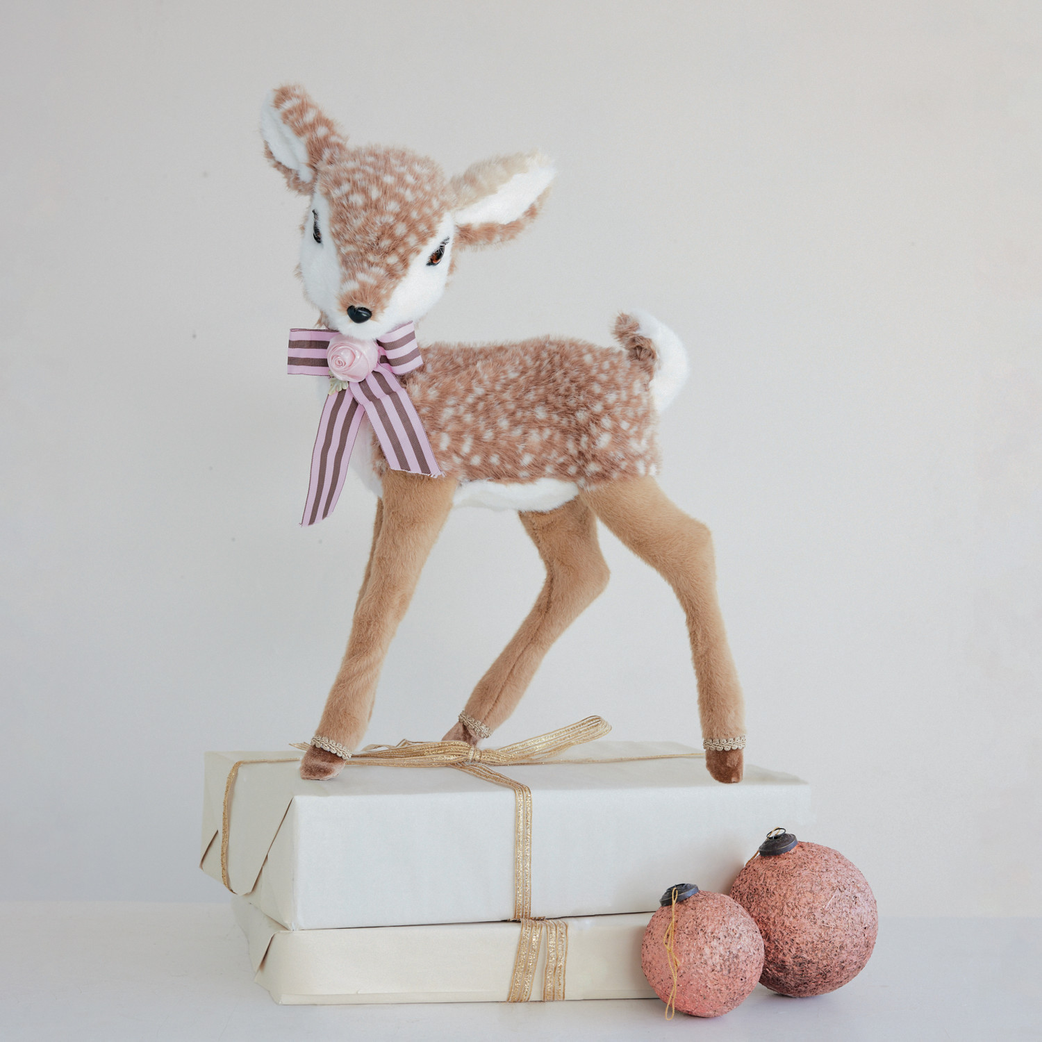 Foam & Faux Fur Standing Fawn with Striped Bow, Brown, White & Pink