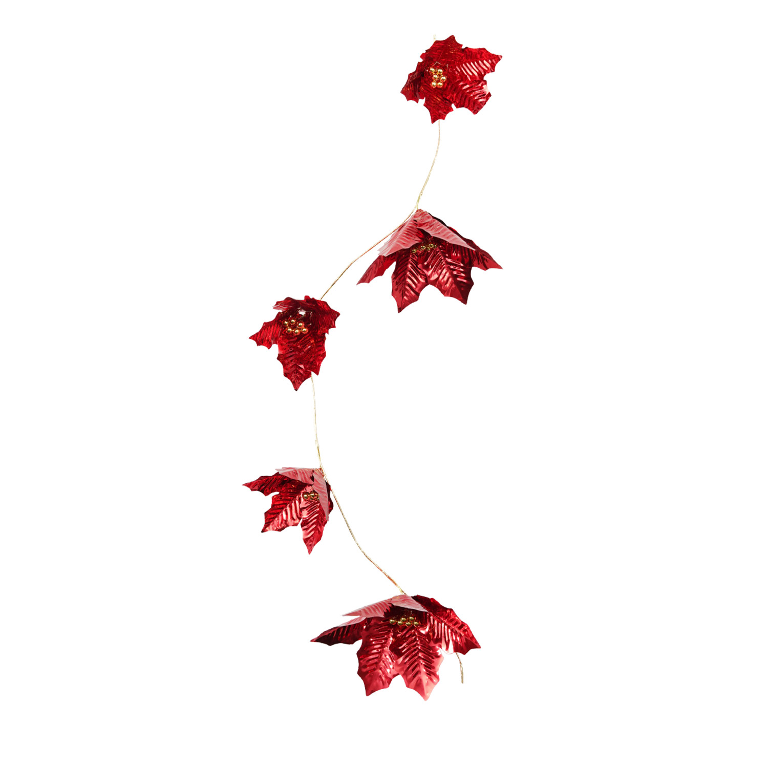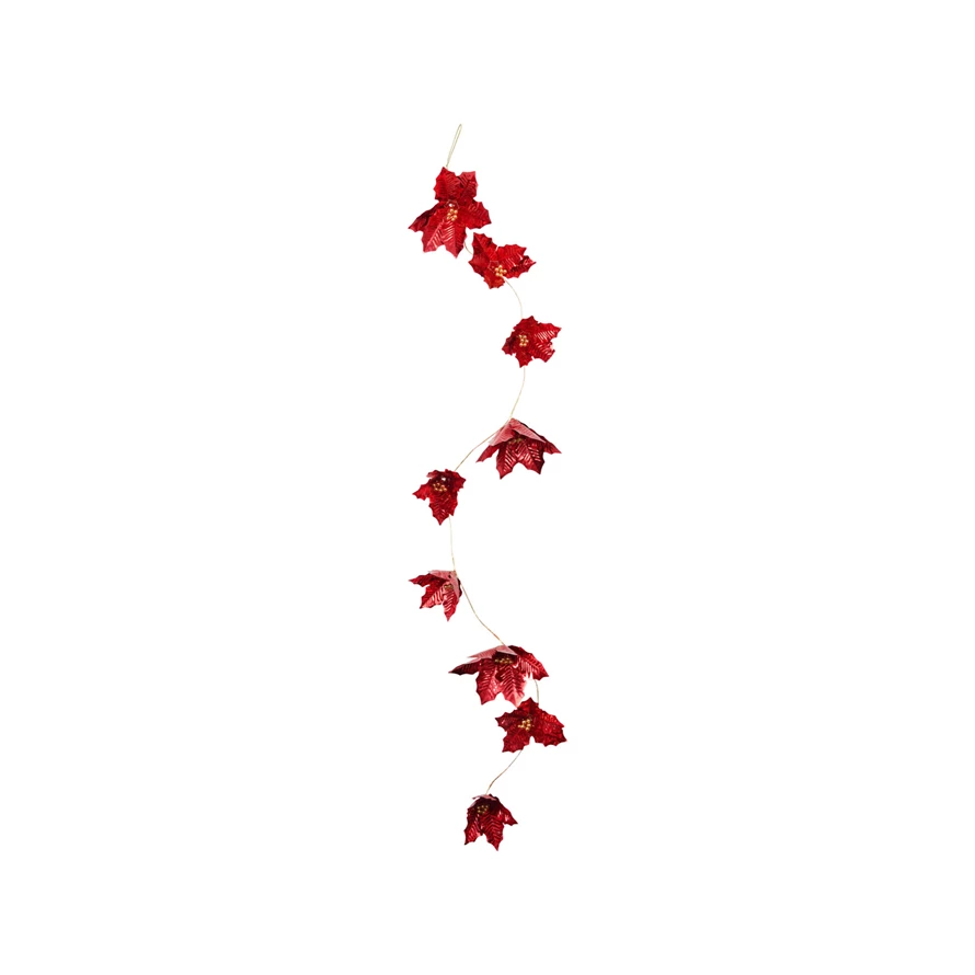Foil Poinsettia Garland with Beads, Red & Gold Finish