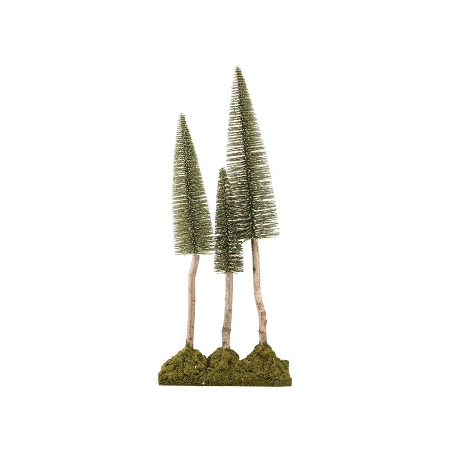 Plastic Bottle Brush Trees with Birch Wood Trunks & Moss Base