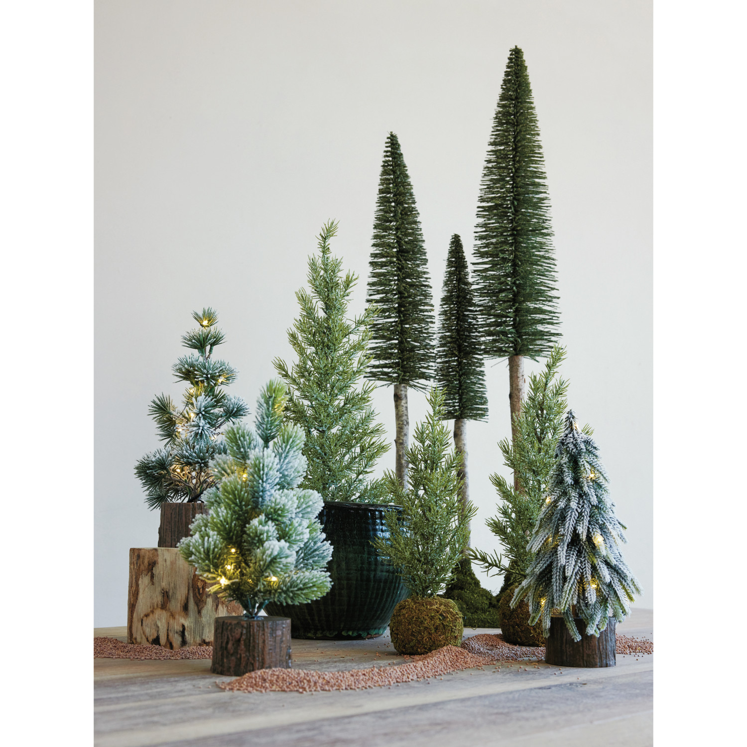 Catalog Name: 15"L x 36-1/4"H Plastic Bottle Brush Trees w/ Birch Wood Trunks & Moss Base