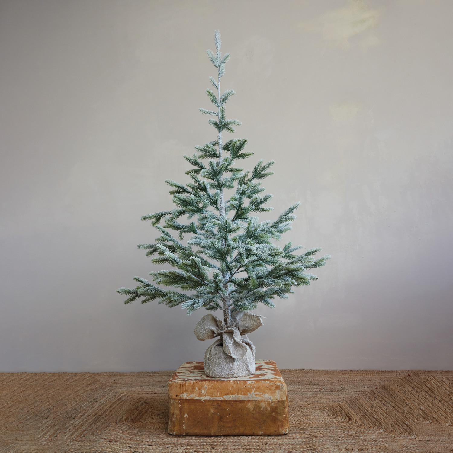 Faux Pine Tree in Burlap Sack, Frost Finish