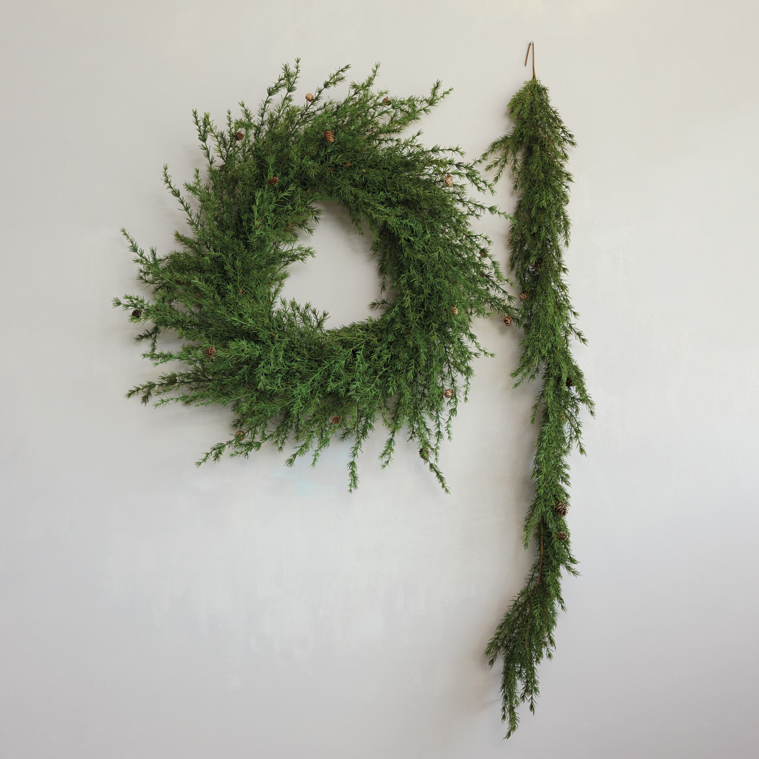 Faux Cedar Garland with Natural Pinecones