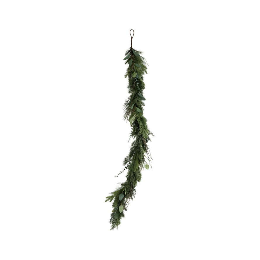 Faux Pine, Eucalyptus & Laurel Garland with Twigs