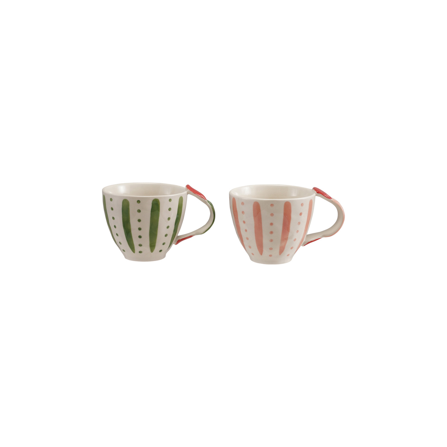 12 oz. Hand-Painted Stoneware Mug with Stripes, Dots & Candy Shaped Handles, 2 Colors