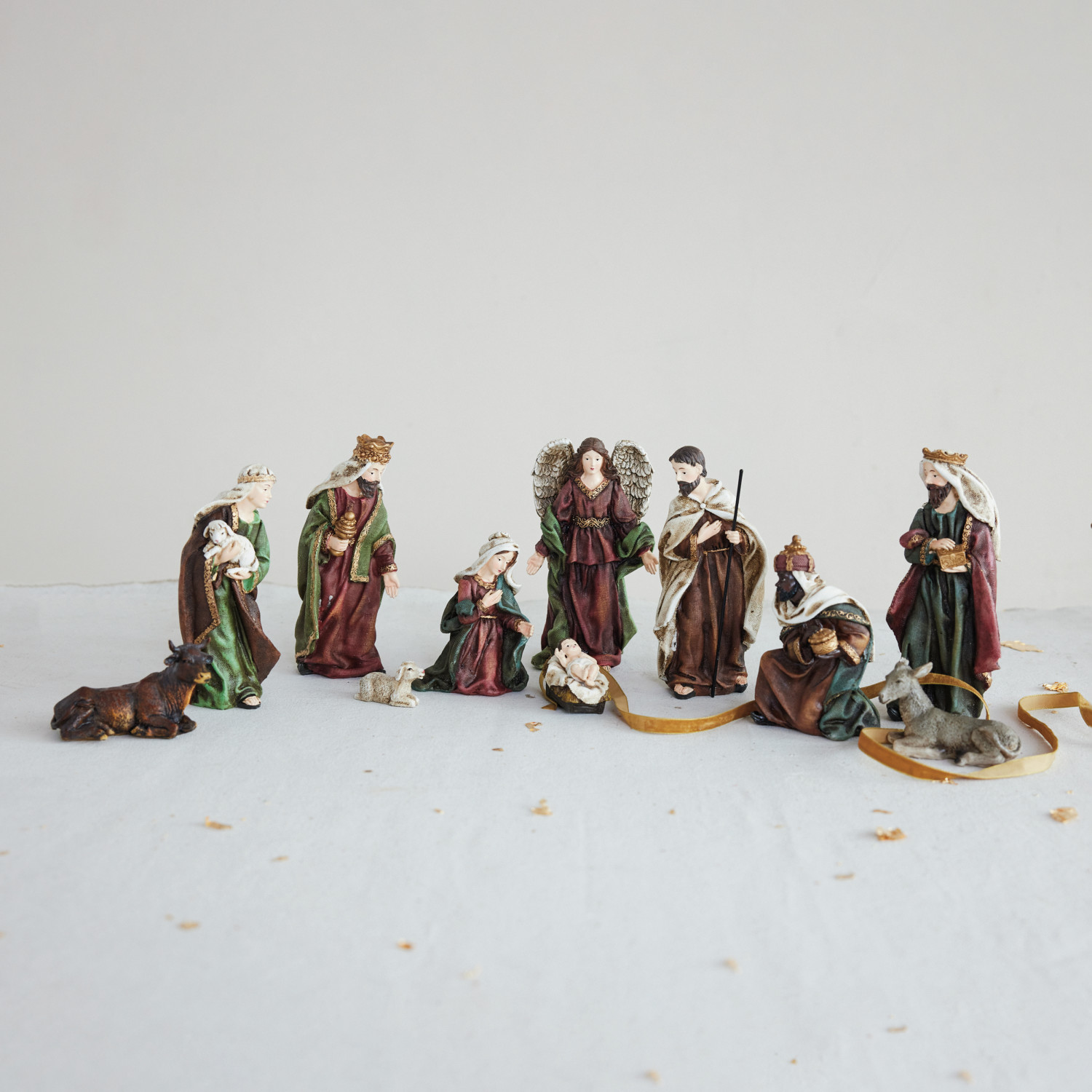 Catalog Name: Approximately 7"H Handmade Resin Nativity, Multi Color, Set of 11