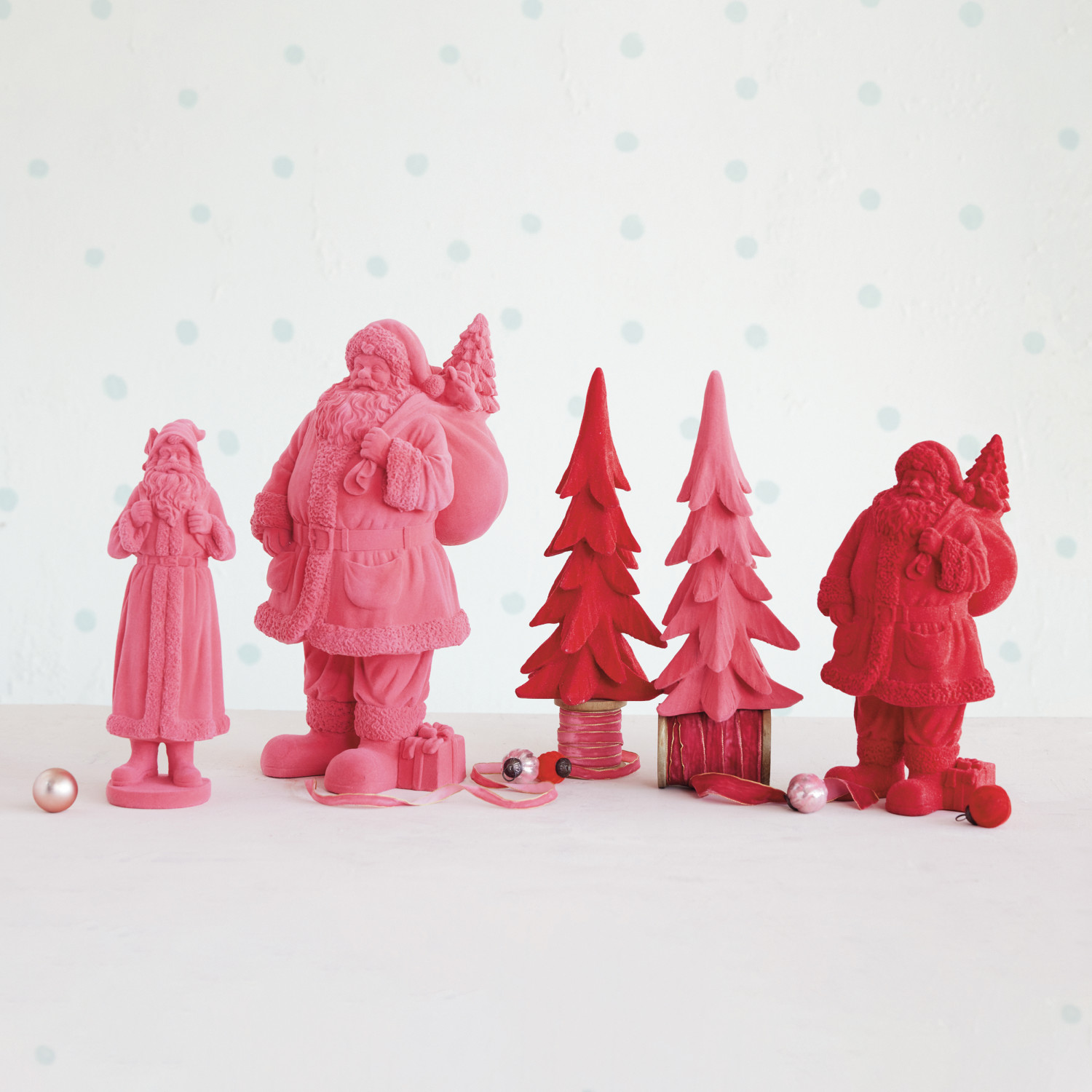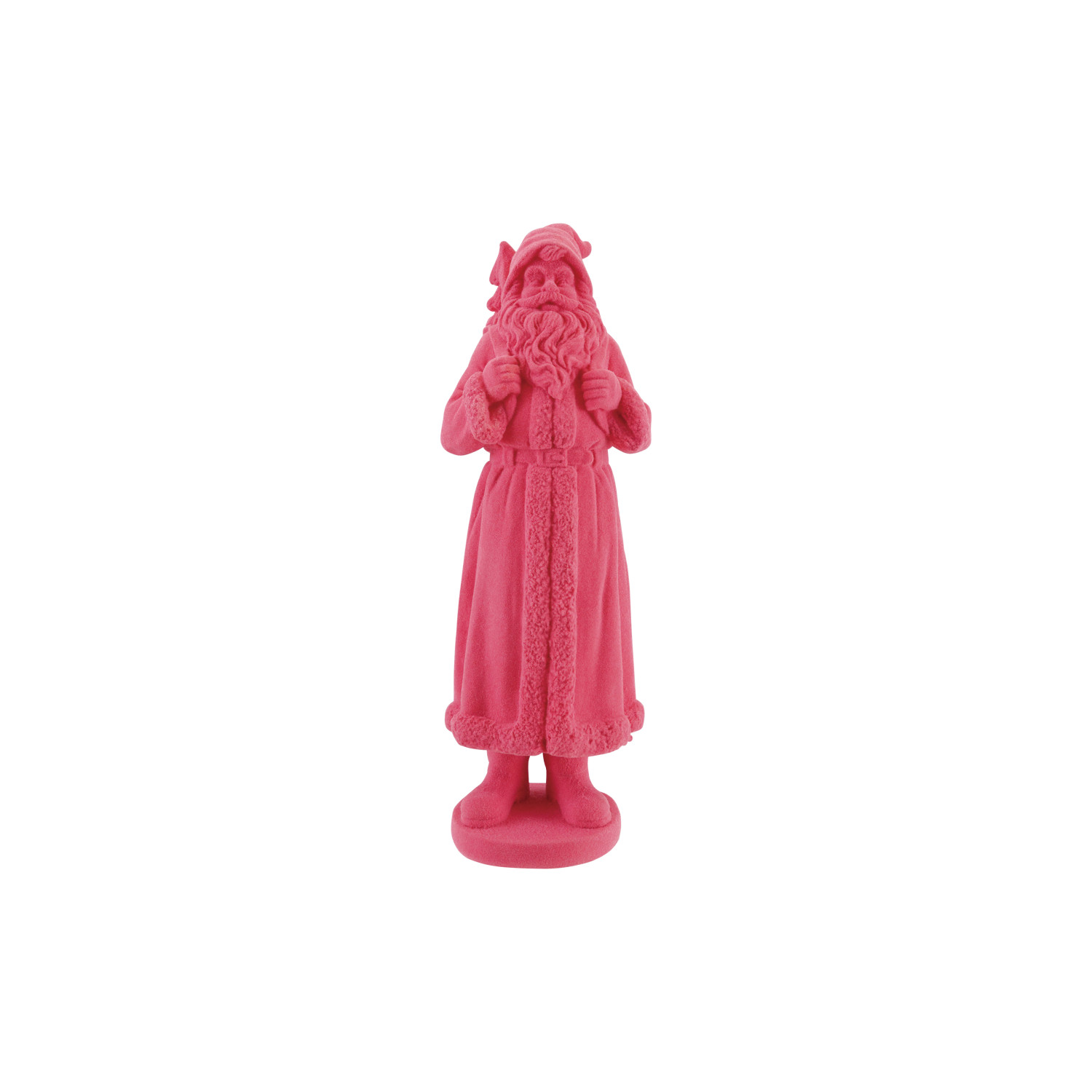 Catalog Name: 5"L x 4-1/4"W x 12-1/4"H Flocked Resin Santa, Pink