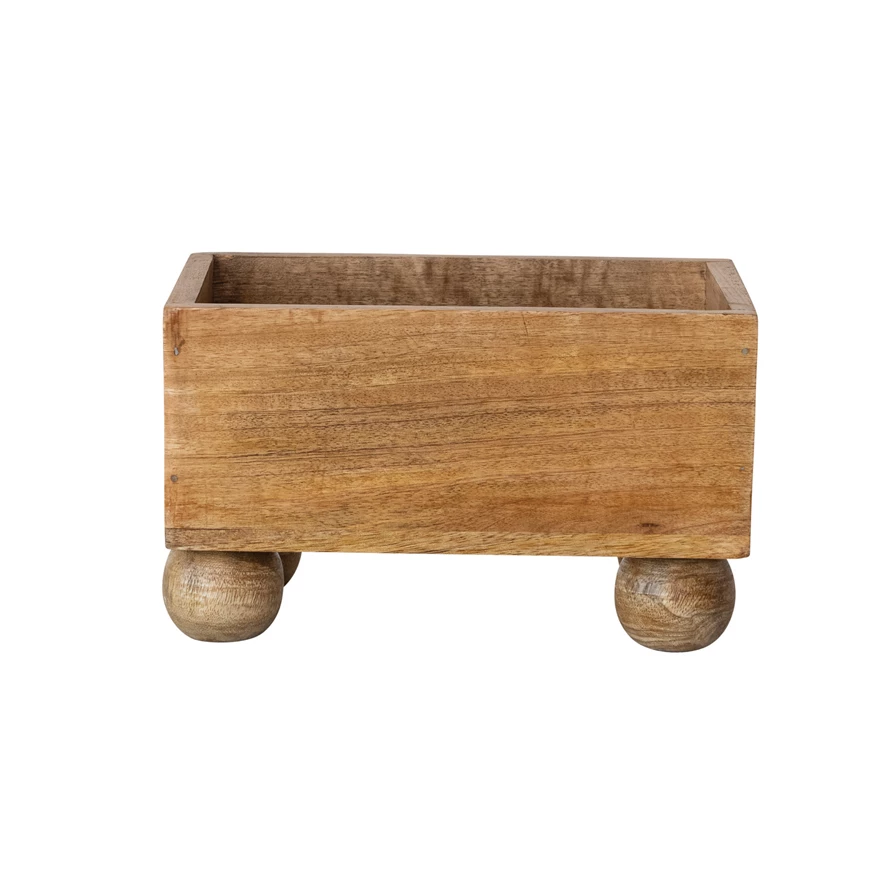 Catalog Name: 9-1/4"L x 5-1/4"W x 5-3/4"H Mango Wood Container w/ Ball Feet, Natural