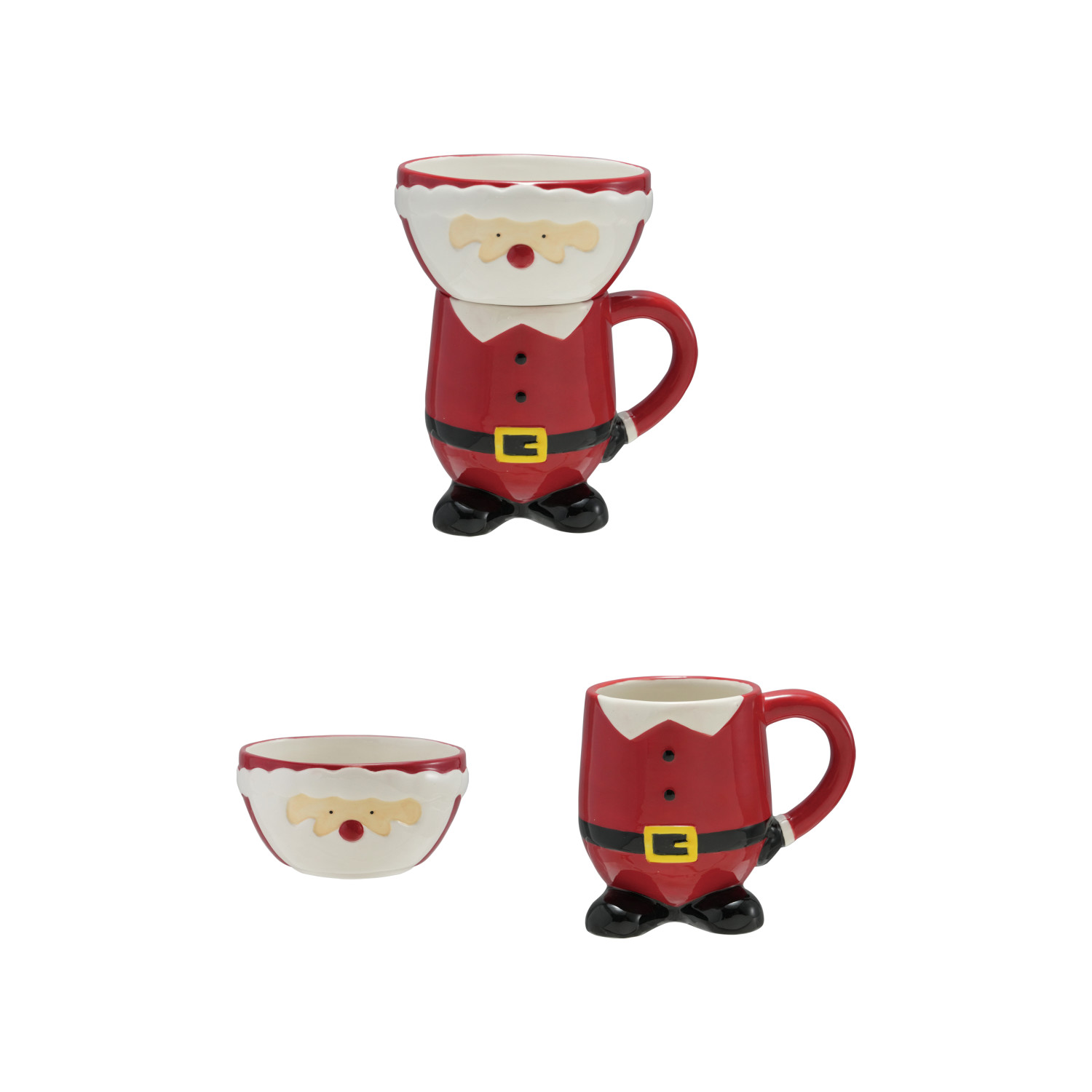18 oz. Hand-Painted Ceramic Santa Shaped Mug & Stackable Bowl, Set of 2
