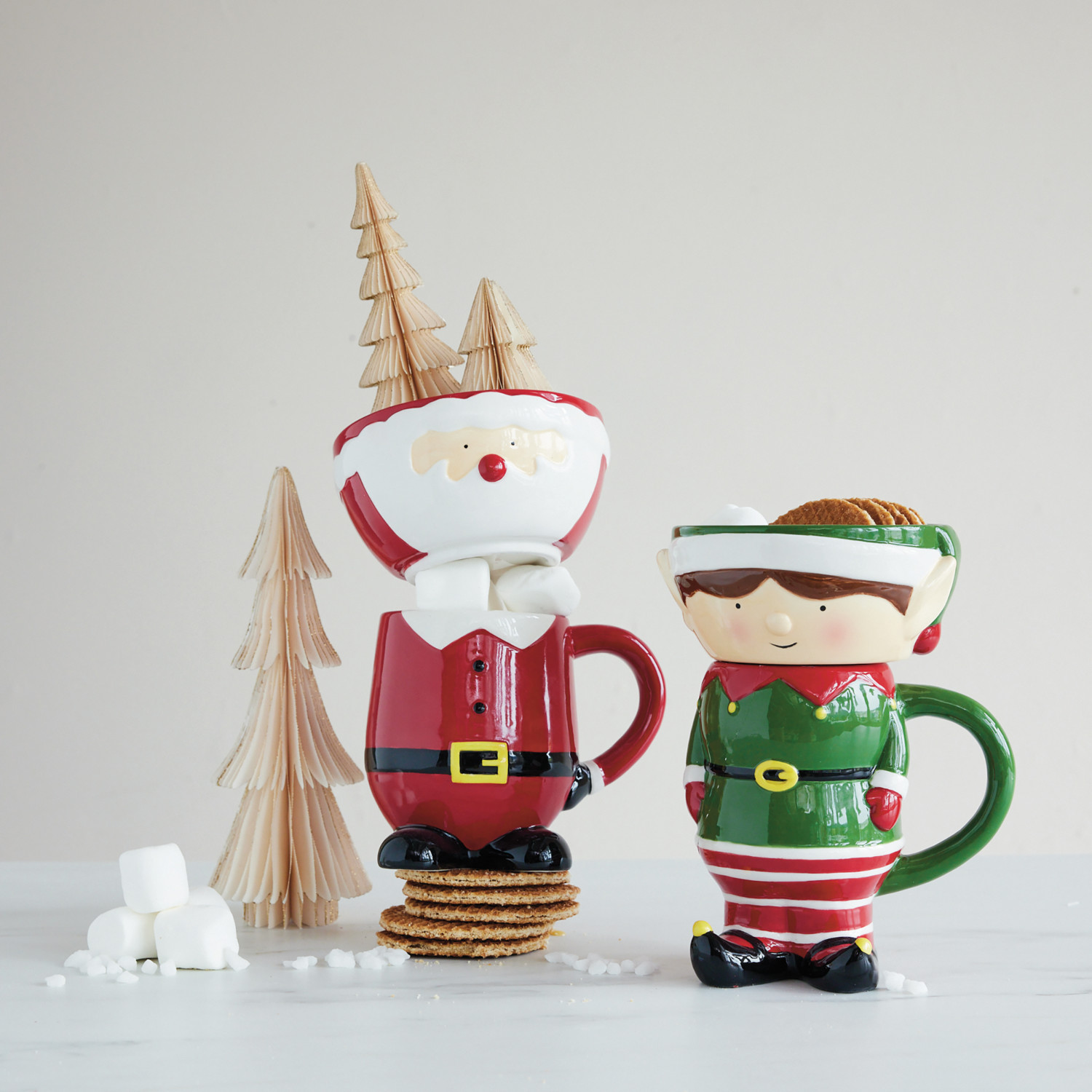 Catalog Name: 4-1/4" Round x 4-3/4"H 18 oz. Hand-Painted Ceramic Santa Shaped Mug & 5" Round x 2-1/2"H Stackable Bowl, Multi Color, Set of 2