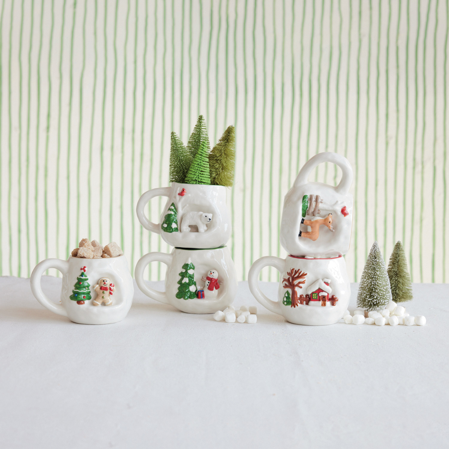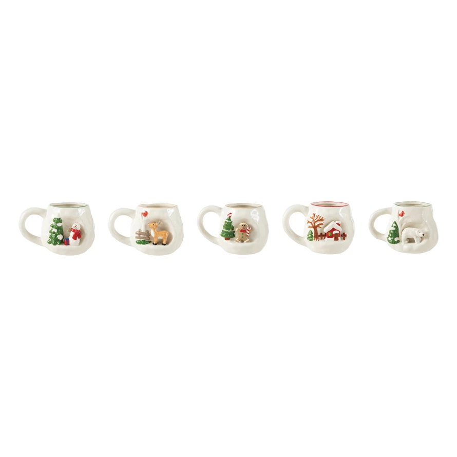 14 oz. Hand-Painted Stoneware Mug with 3D Scene, 5 Styles