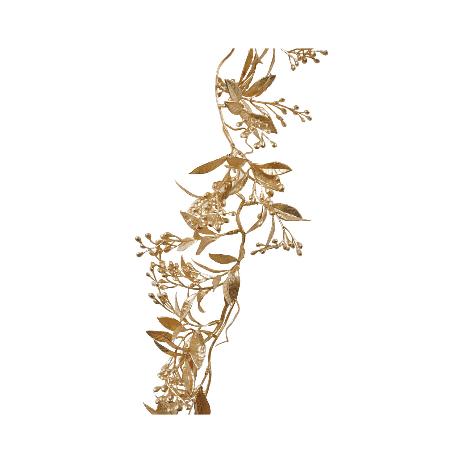 Catalog Name: 63"L x 6-1/4"H Faux Leaves & Berries Garland, Antique Gold Finish