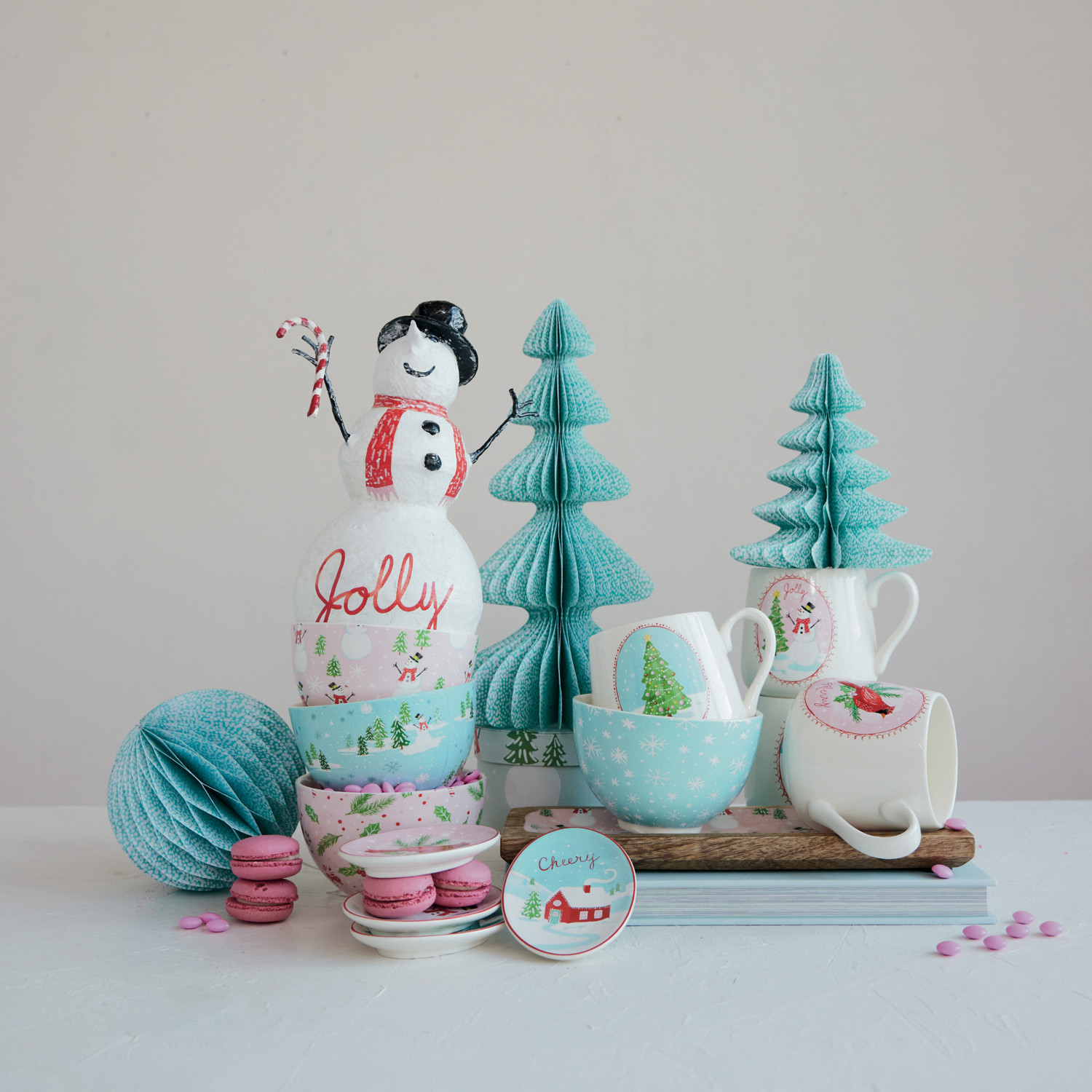 Catalog Name: 3" Round x 3-1/2"H 14 oz. Stoneware Mug w/ Holiday Image & Word, Multi Color, 4 Styles ©