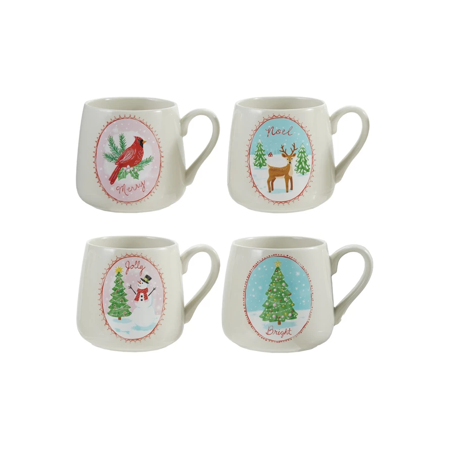 14 oz. Stoneware Mug with Holiday Image & Word, 4 Styles ©