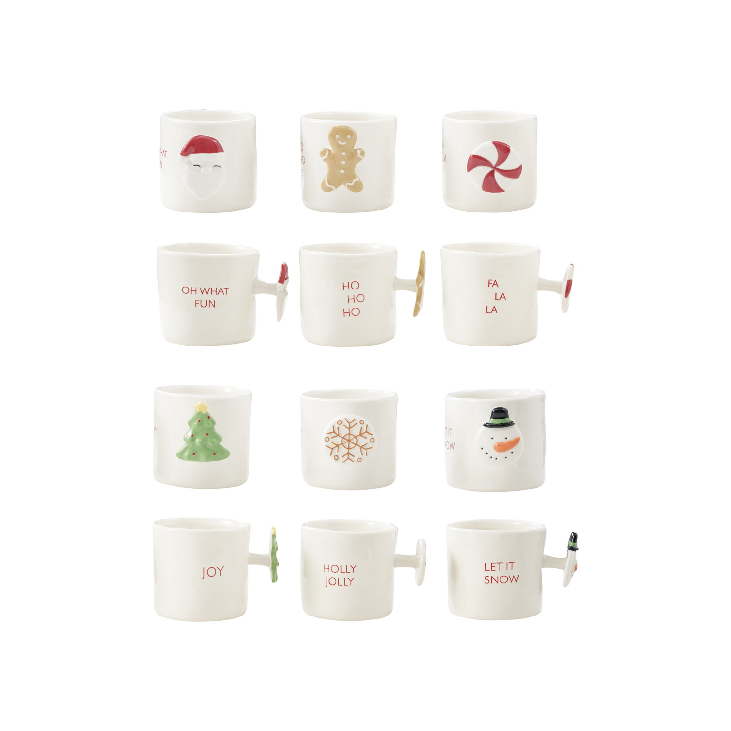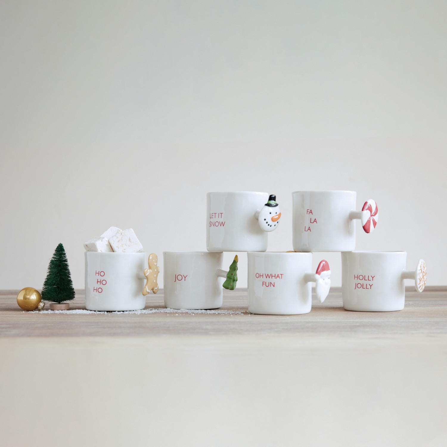 12 oz. Hand-Painted Stoneware Mug with Holiday Saying & Icon Shaped Handle, 6 Styles
