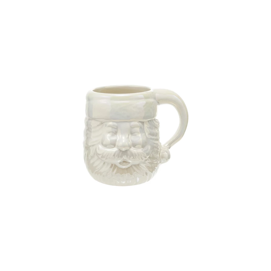 12 oz. Stoneware Santa Head Shaped Mug, Pearlized Finish, White