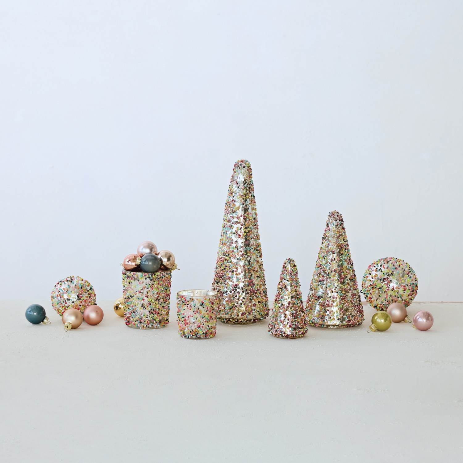 Catalog Name: 4" Round x 8"H Mercury Glass Tree w/ Confetti Beads, Multi Color