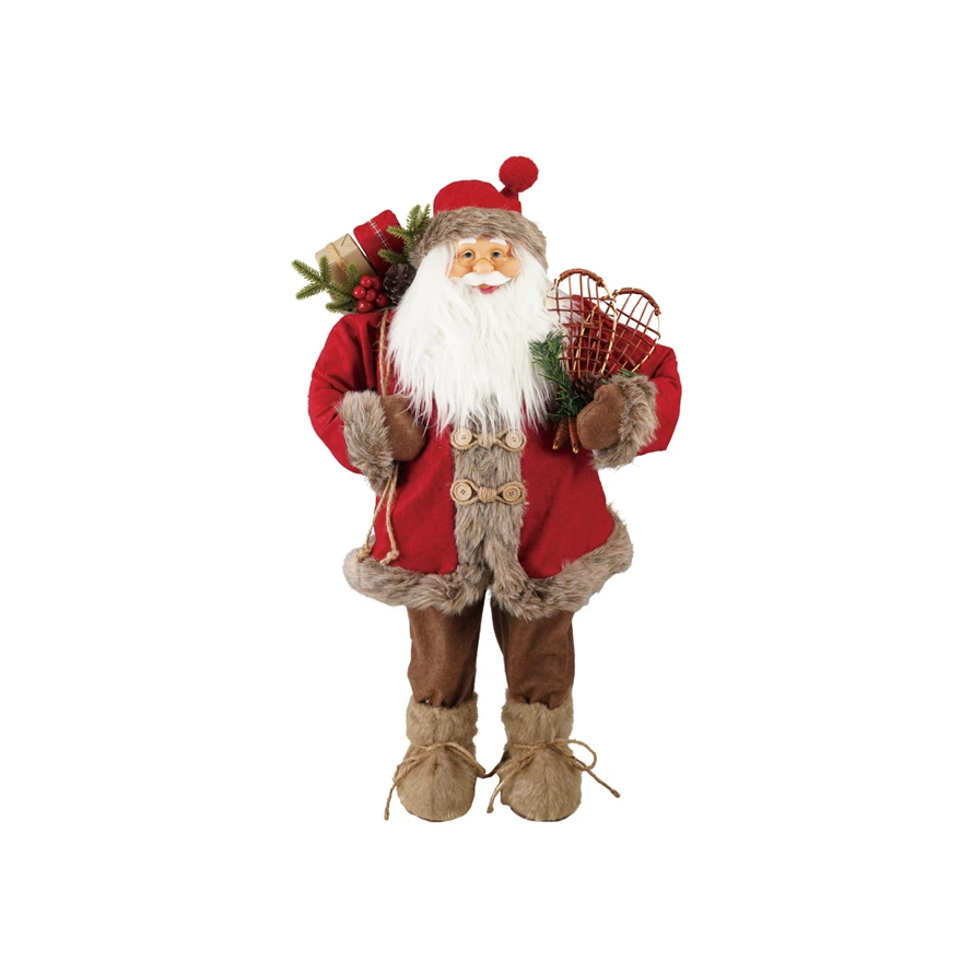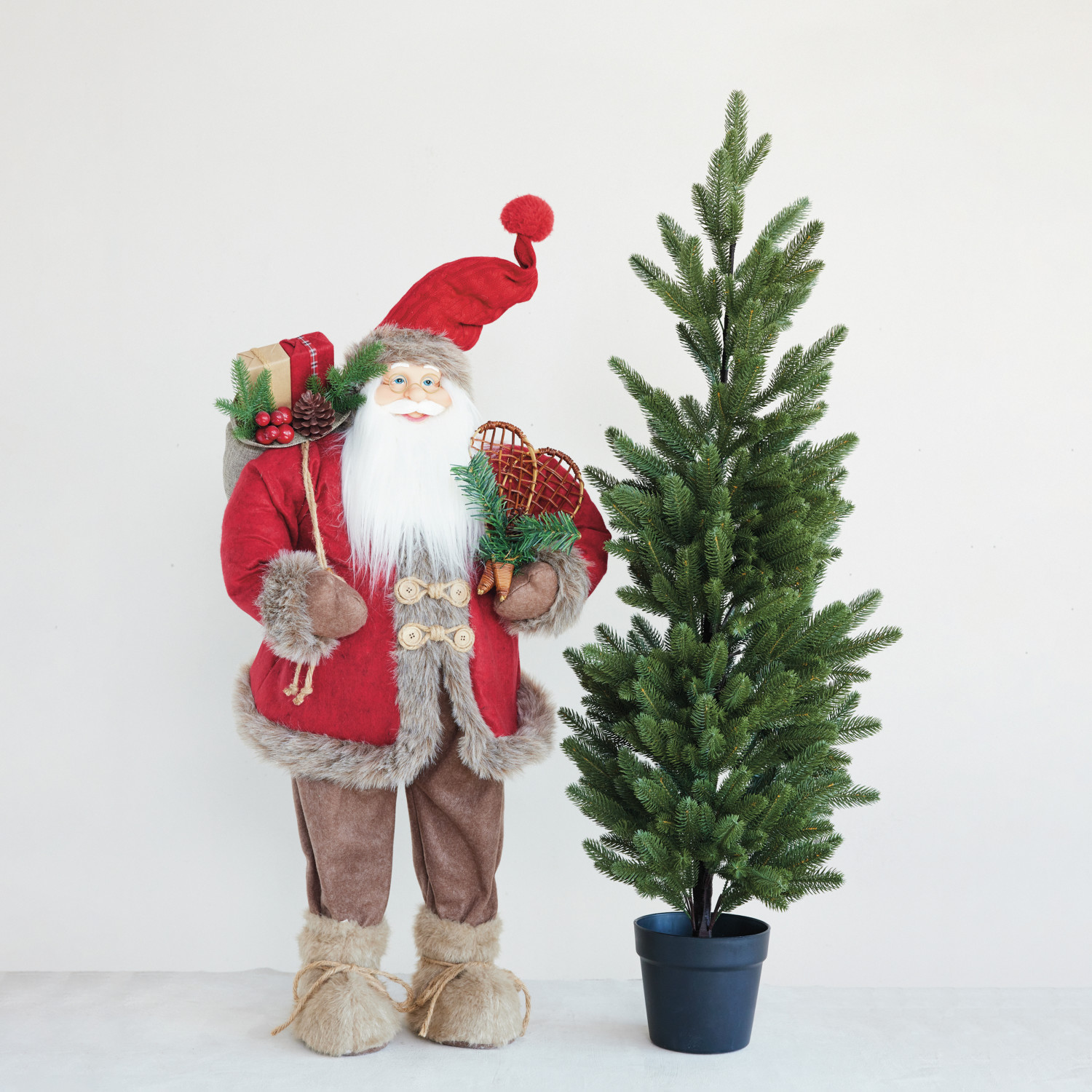 Catalog Name: 21"L x 10"W x 36"H Fabric & Faux Fur Santa w/ Snowshoes, Multi Color