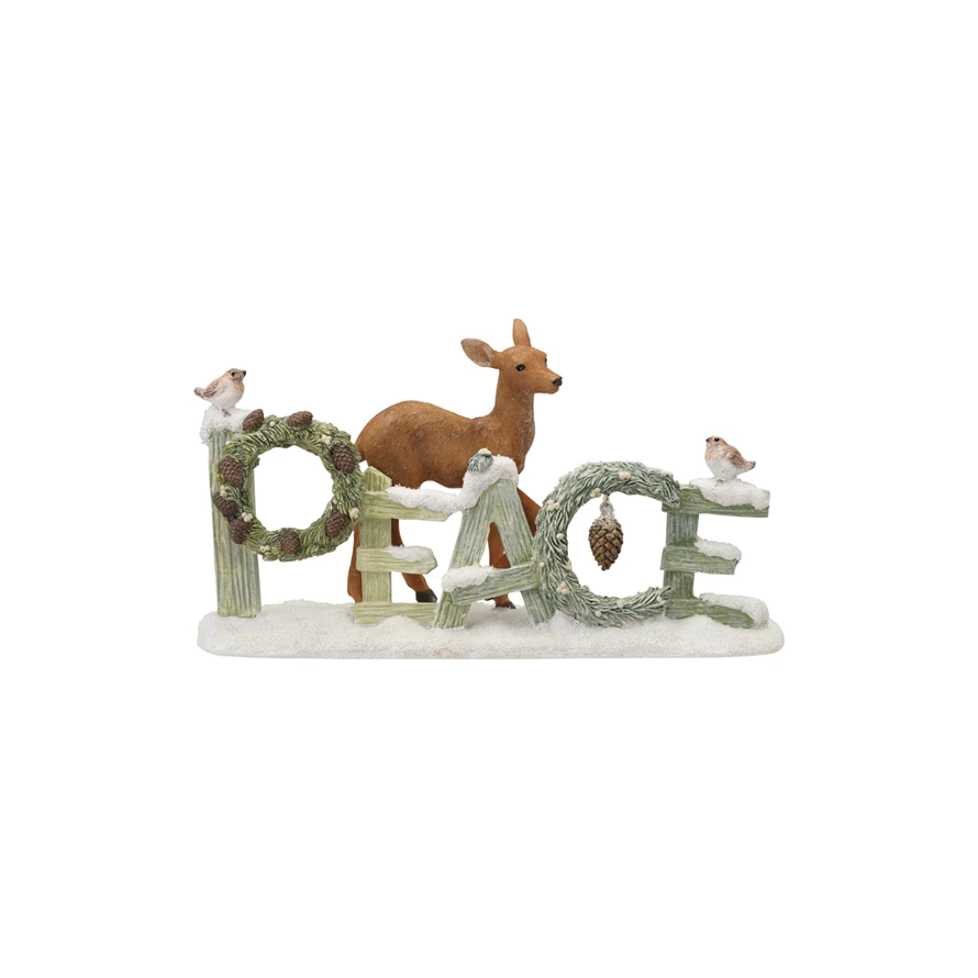 Catalog Name: 9-3/4"L x 2-1/2"W x 5-1/4"H Resin Sign w/ Wreaths & Figures "Peace", Multi Color