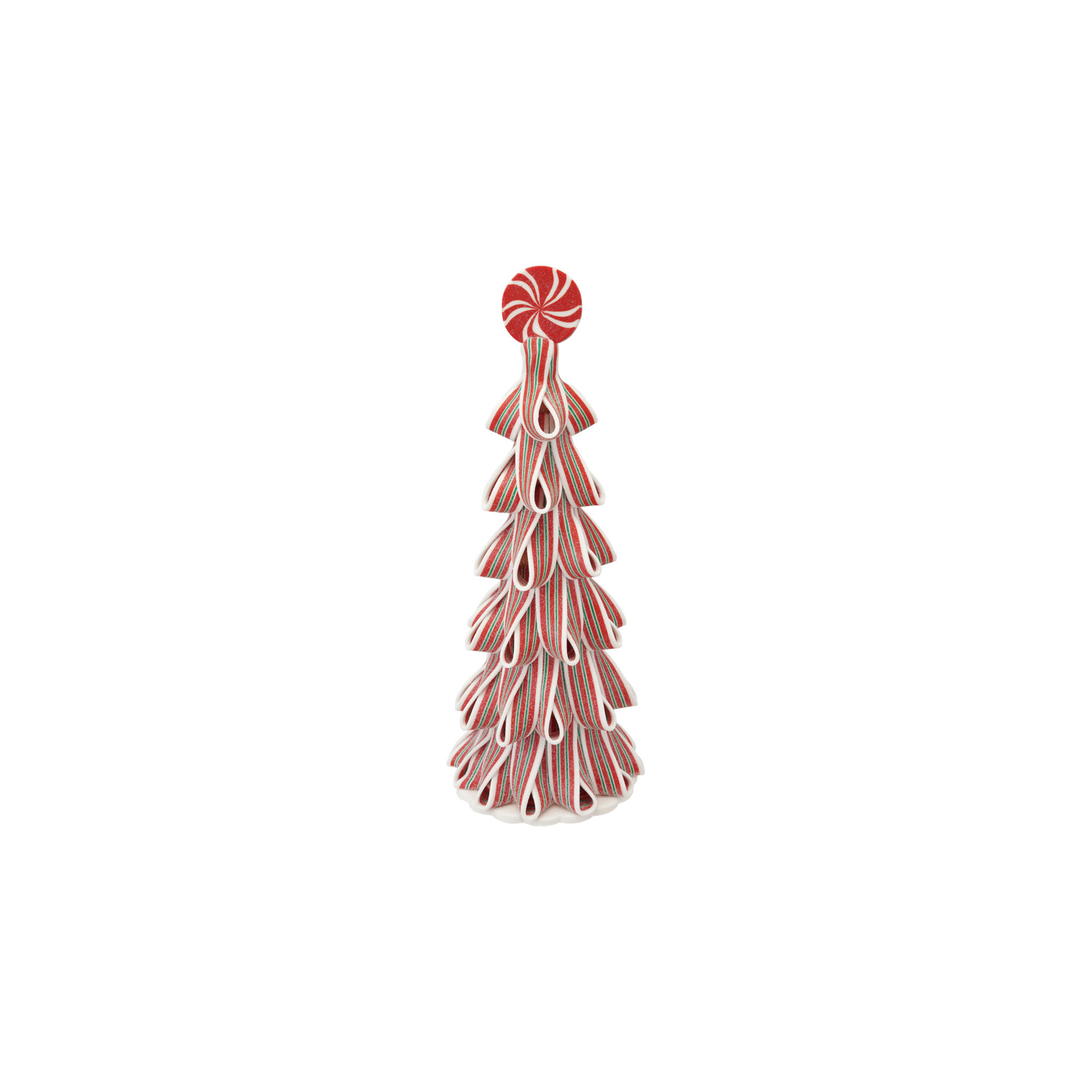 Catalog Name: 5" Round x 13"H Clay Candy Ribbon Tree w/ Glitter & Peppermint, Red, White & Green