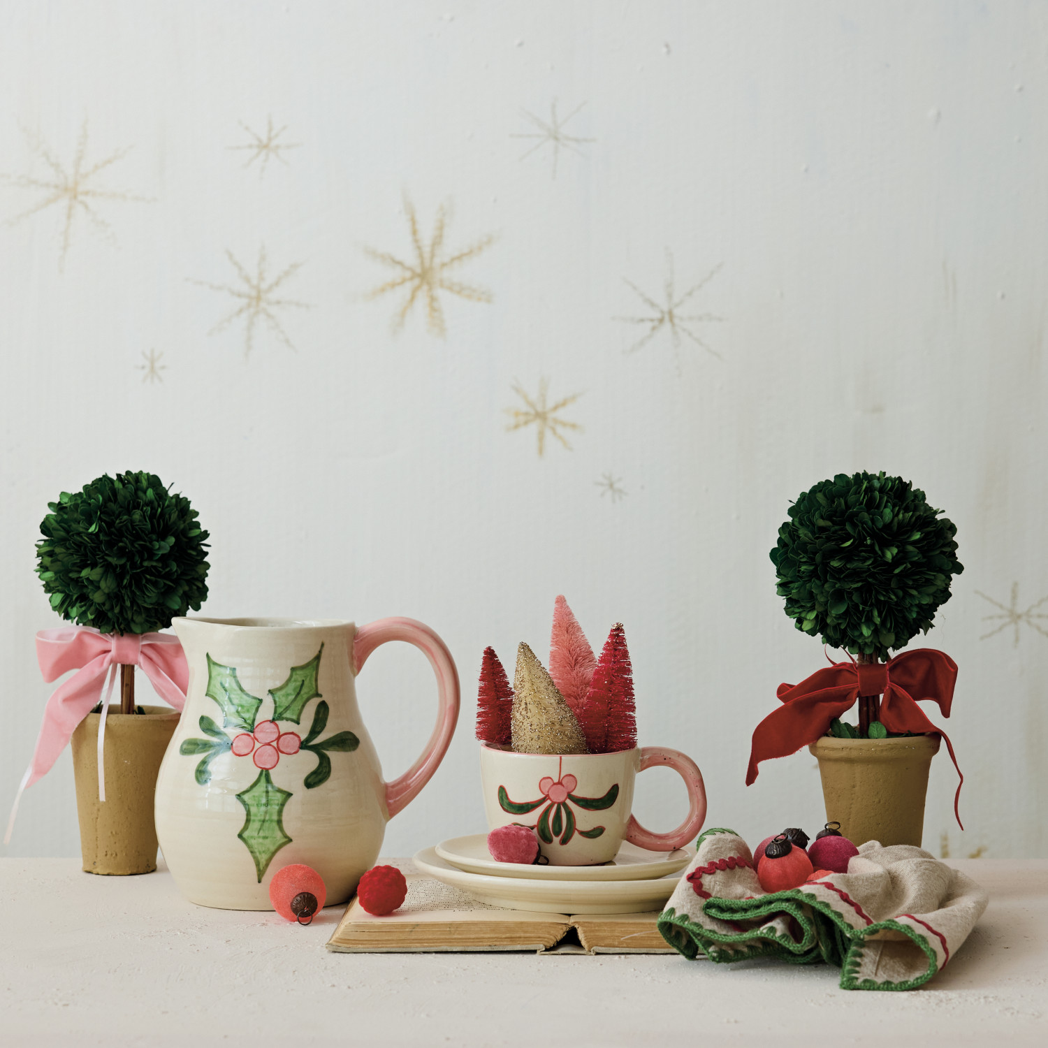 Dried Boxwood Tree in Terra-cotta Pot with Pink Velvet Bow