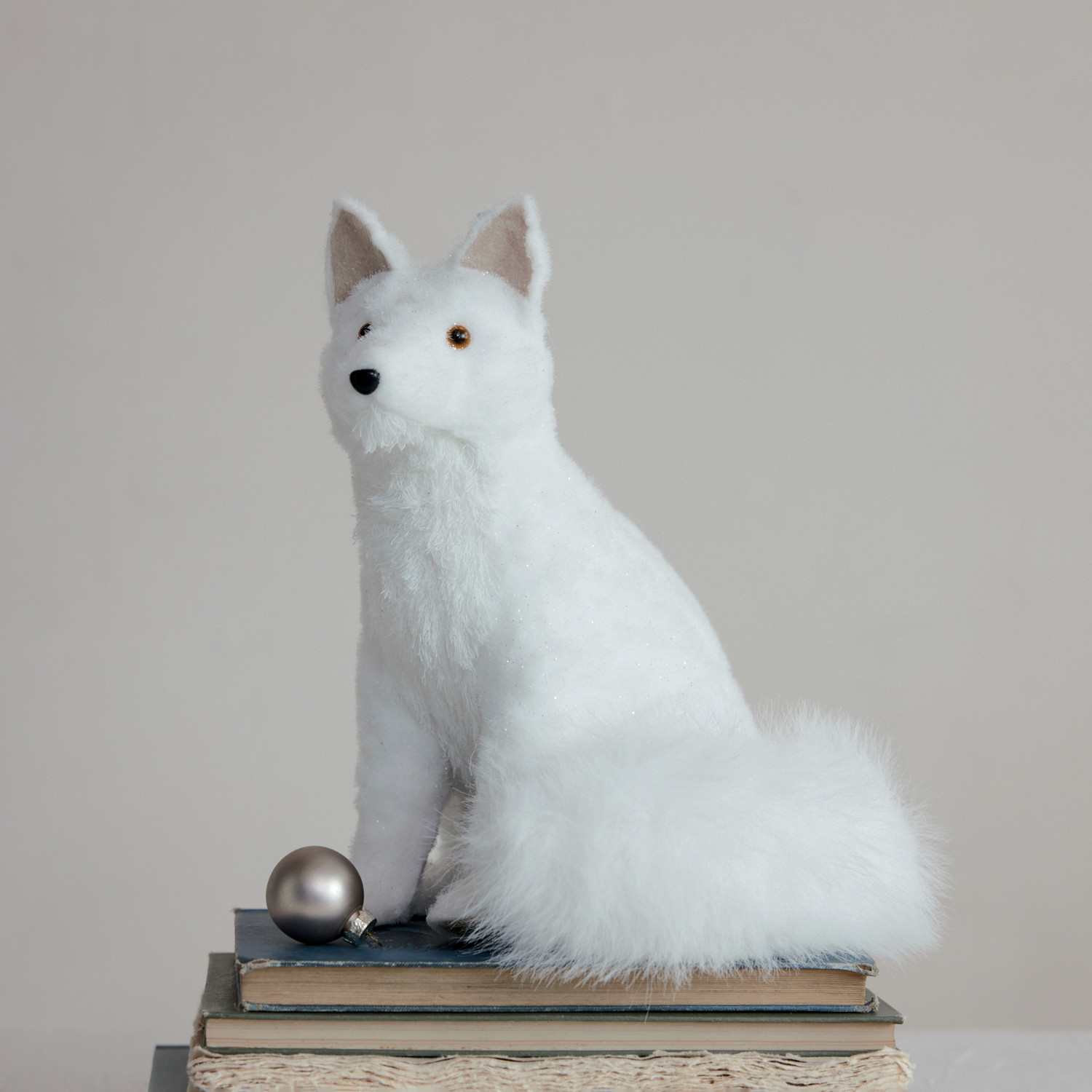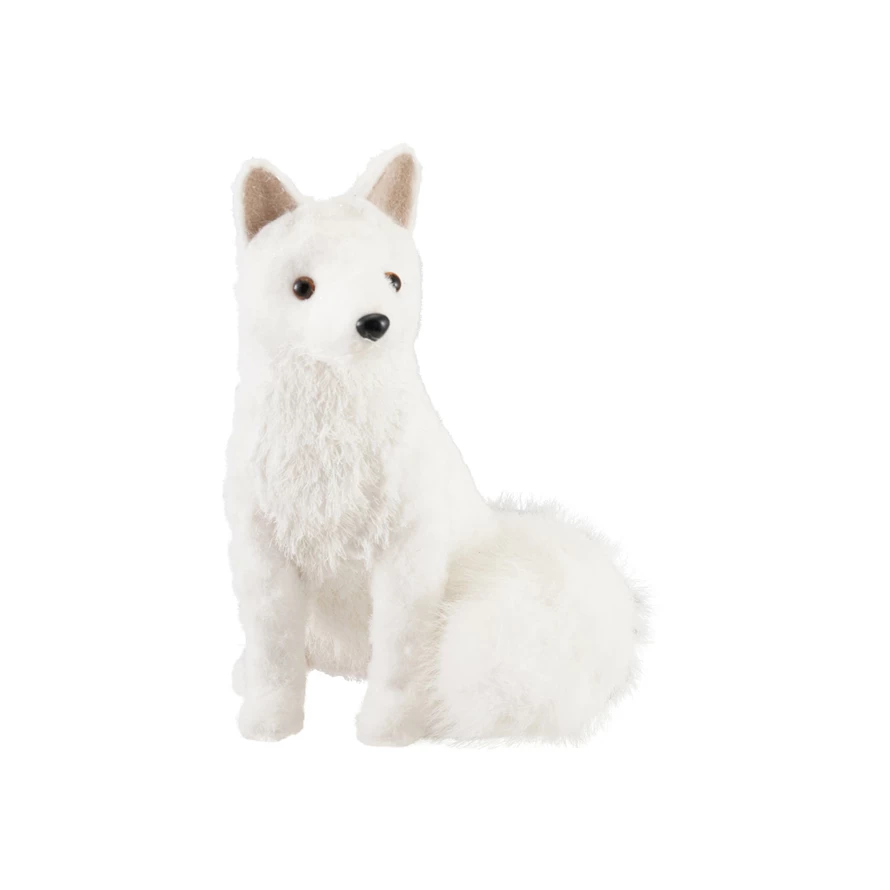 Catalog Name: 9-1/2"L x 8"W x 11"H Fabric & Faux Fur Fox, White