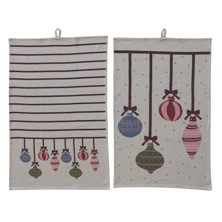 Catalog Name: 28"L x 18"W Woven Cotton Printed Tea Towel w/ Pattern & Ornaments, Multi Color, 2 Styles
