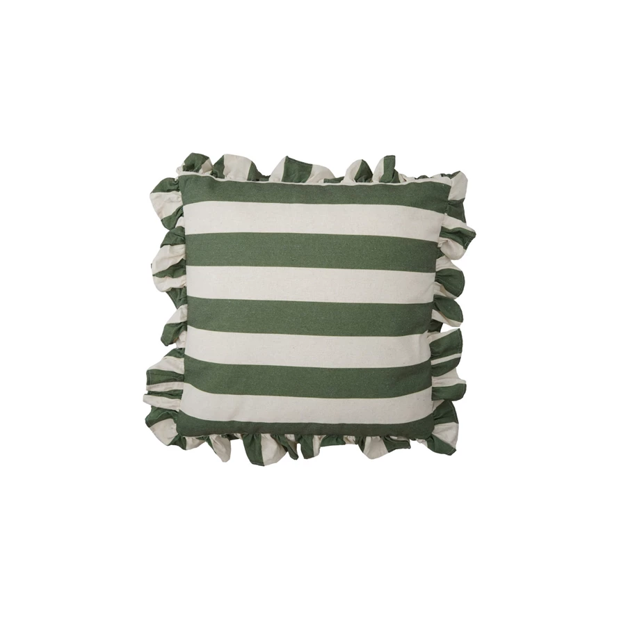 Catalog Name: 18" Square Fabric Striped Pillow w/ Ruffle, Green & Natural