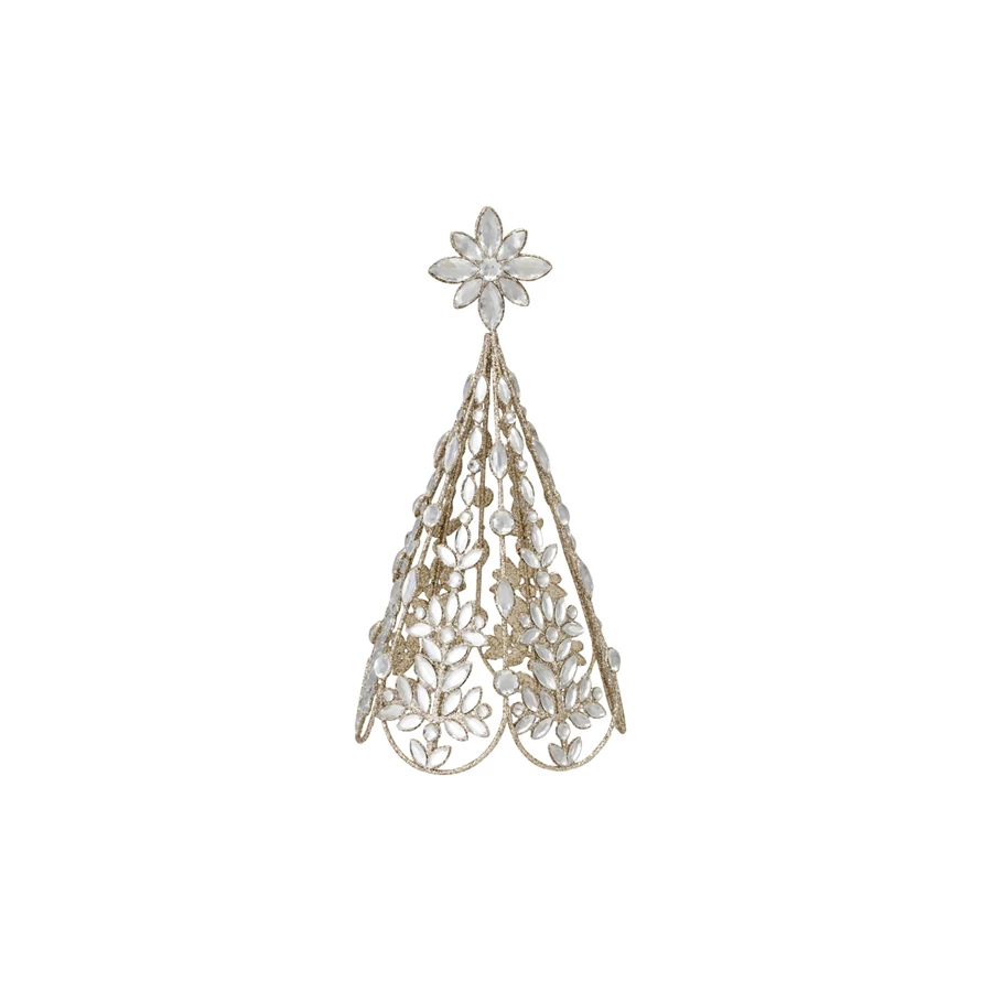 Catalog Name: 5-1/4" Round x 11-1/2"H Metal Tree w/ Acrylic Jewels & Glitter, Champagne Finish