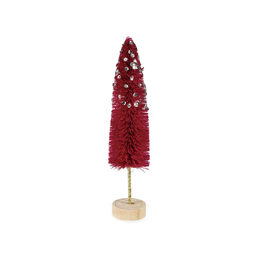 Catalog Name: 2-3/4" Round x 12-1/4"H Sisal Bottle Brush Tree w/ Sequins & Wood Base, Fuchsia Color