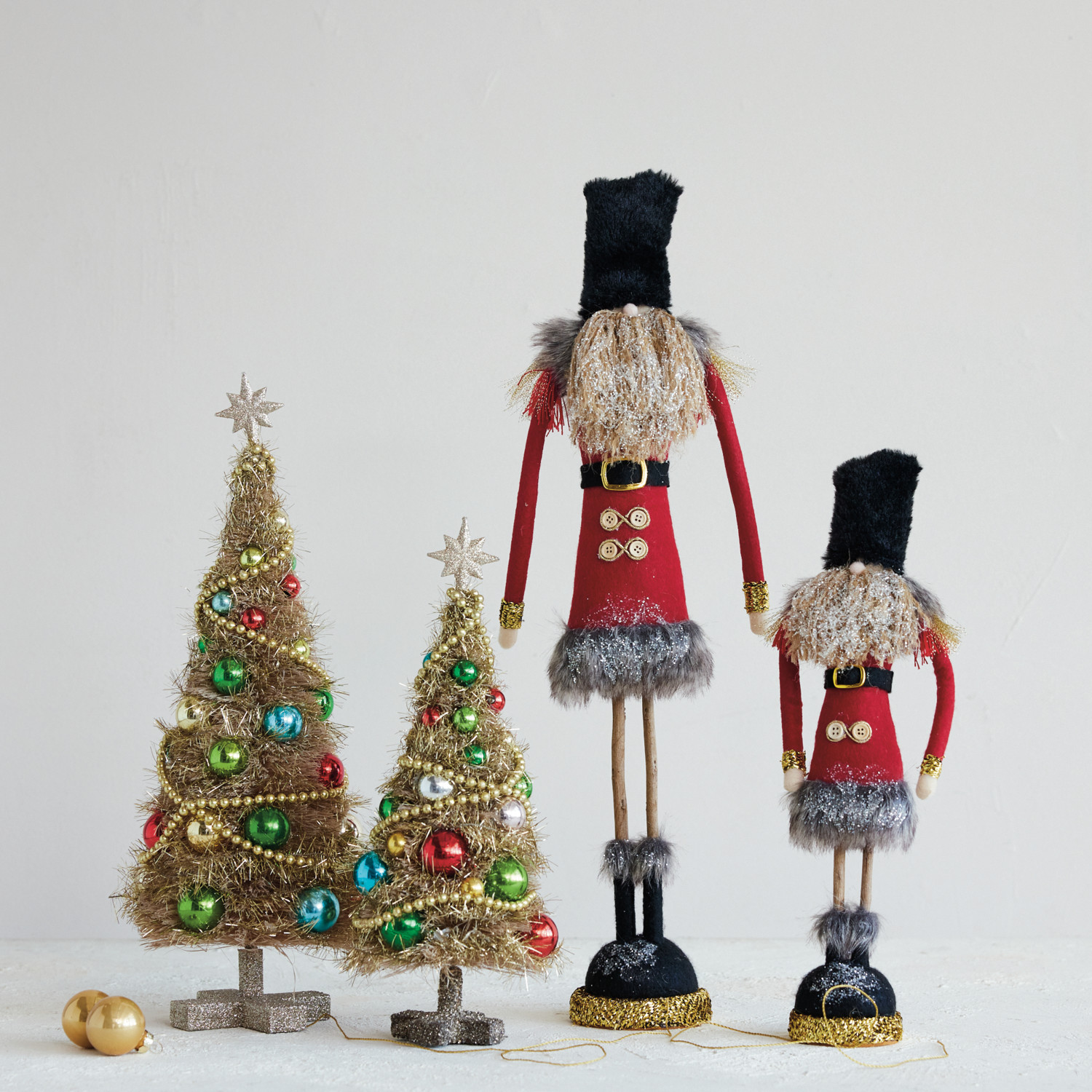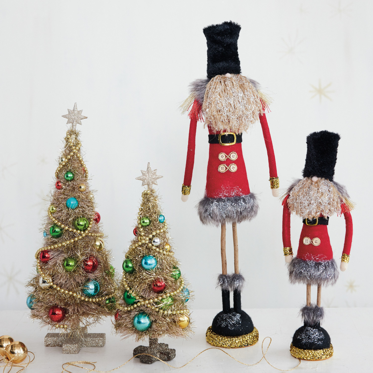 Catalog Name: 6-1/4"W x 22"H Fabric Soldier w/ Glitter, Faux Fur & Twig Legs, Multi Color