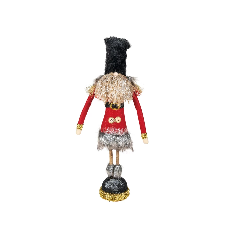 Catalog Name: 4-3/4"W x 13-3/4"H Fabric Soldier w/ Glitter, Faux Fur & Twig Legs, Multi Color