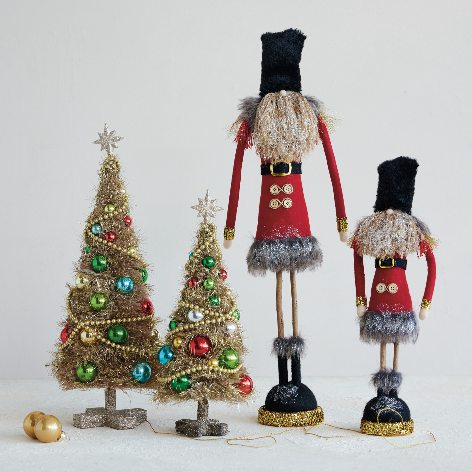 Sisal & Tinsel Vintage Reproduction Trees with Glitter Star/Base, Set of 2