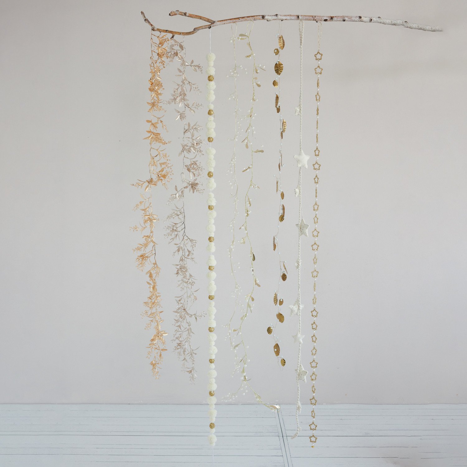 Metal Wire Garland with Faux Pearls, Gold Finish