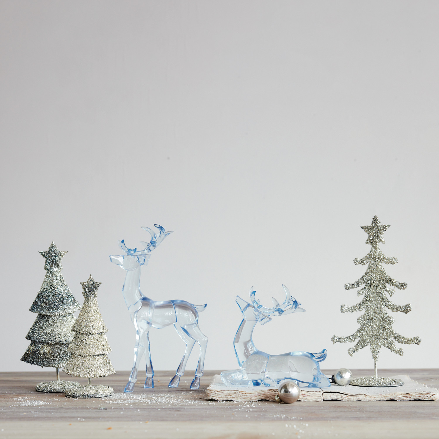 Metal Tree with Mica Flakes & Star, Antique Silver Finish