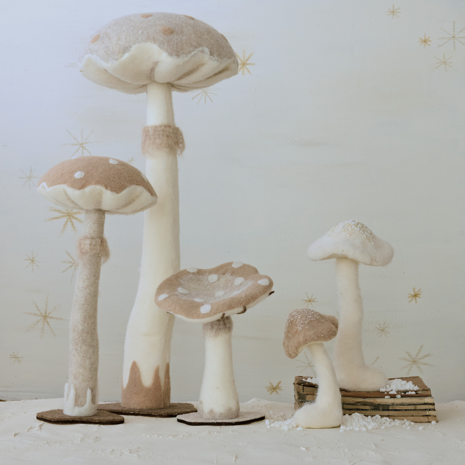Foam & Fabric Mushroom with Glitter & Base, Brown & Cream Color