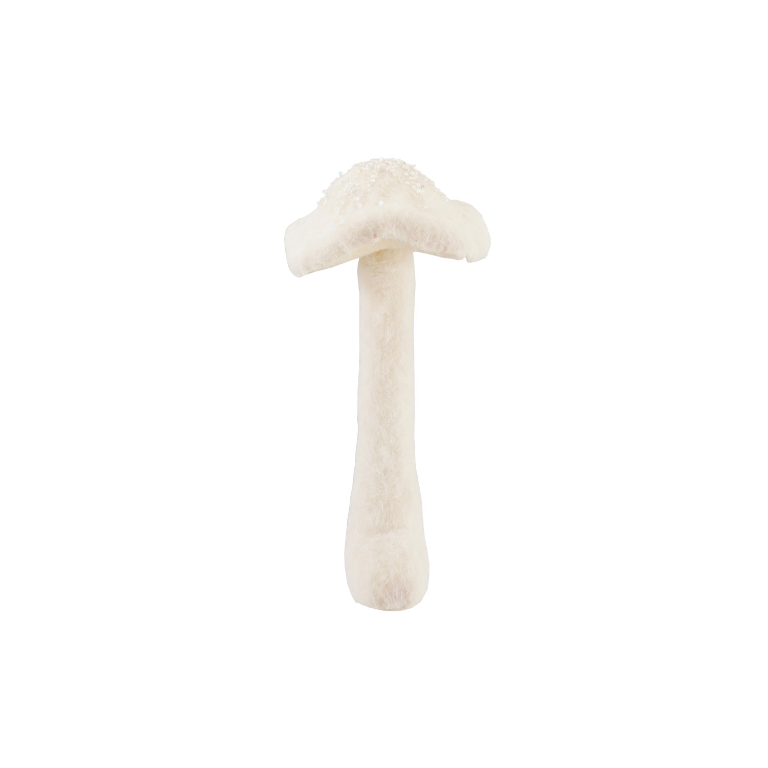Catalog Name: 6-1/4" Round x 13"H Foam & Fabric Mushroom w/ Glitter & Base, Cream Color