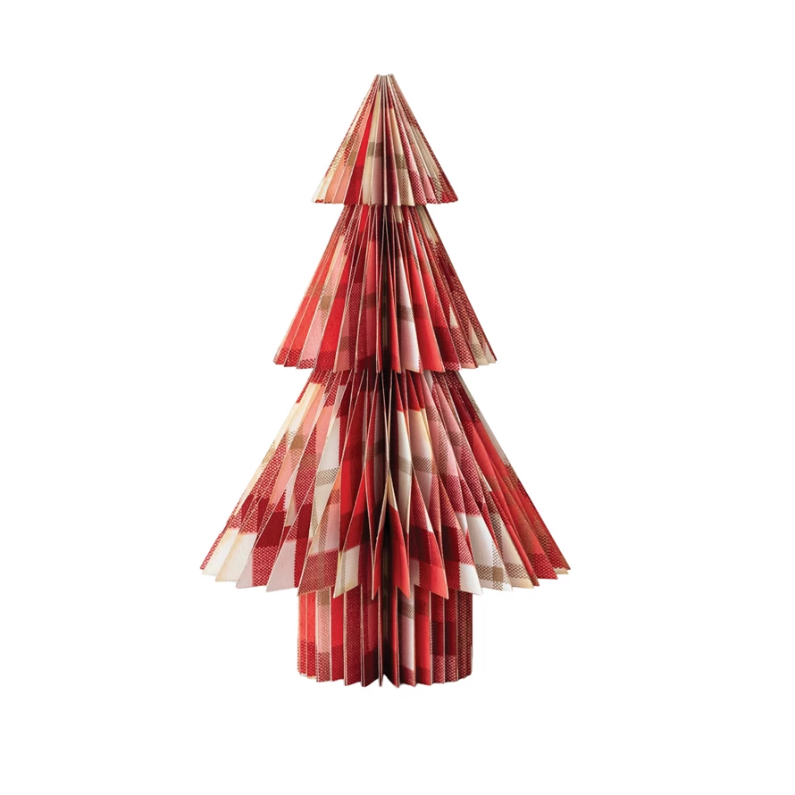 Handmade Printed Recycled Paper Folding Honeycomb Tree with Plaid Pattern, Red