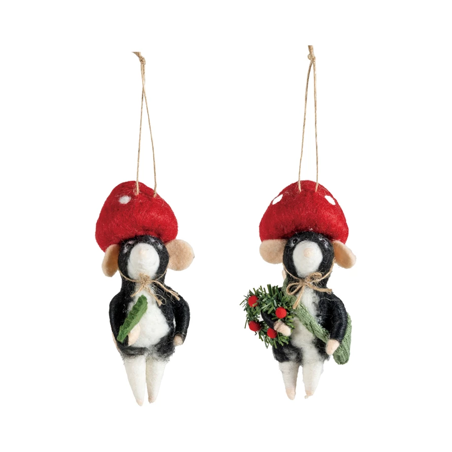 Catalog Name: 4-3/4"H Wool Felt Mole in Mushroom Hat, Multi Color, 2 Styles