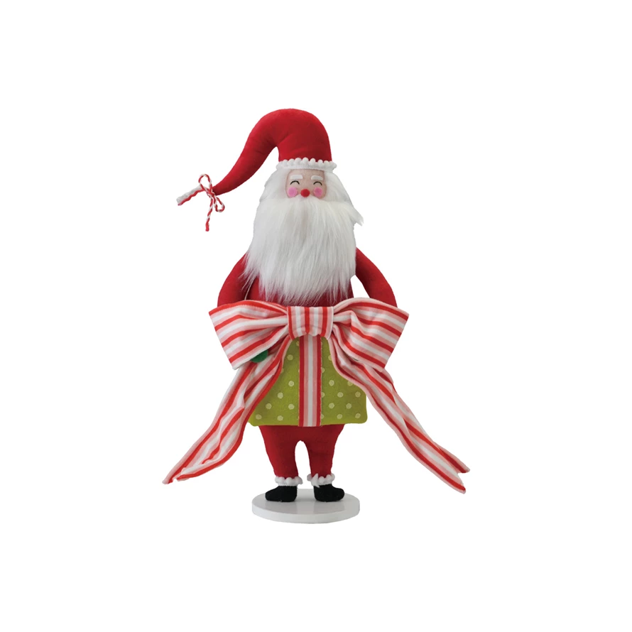 Catalog Name: 9"L x 4"W x 18"H Fabric & MDF Santa w/ Gift & Bow, Red, Green & White ©