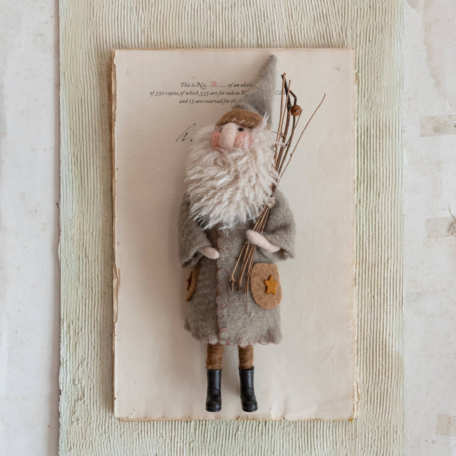 Wool Felt Santa with Twigs, Jingle Bells & Resin Feet