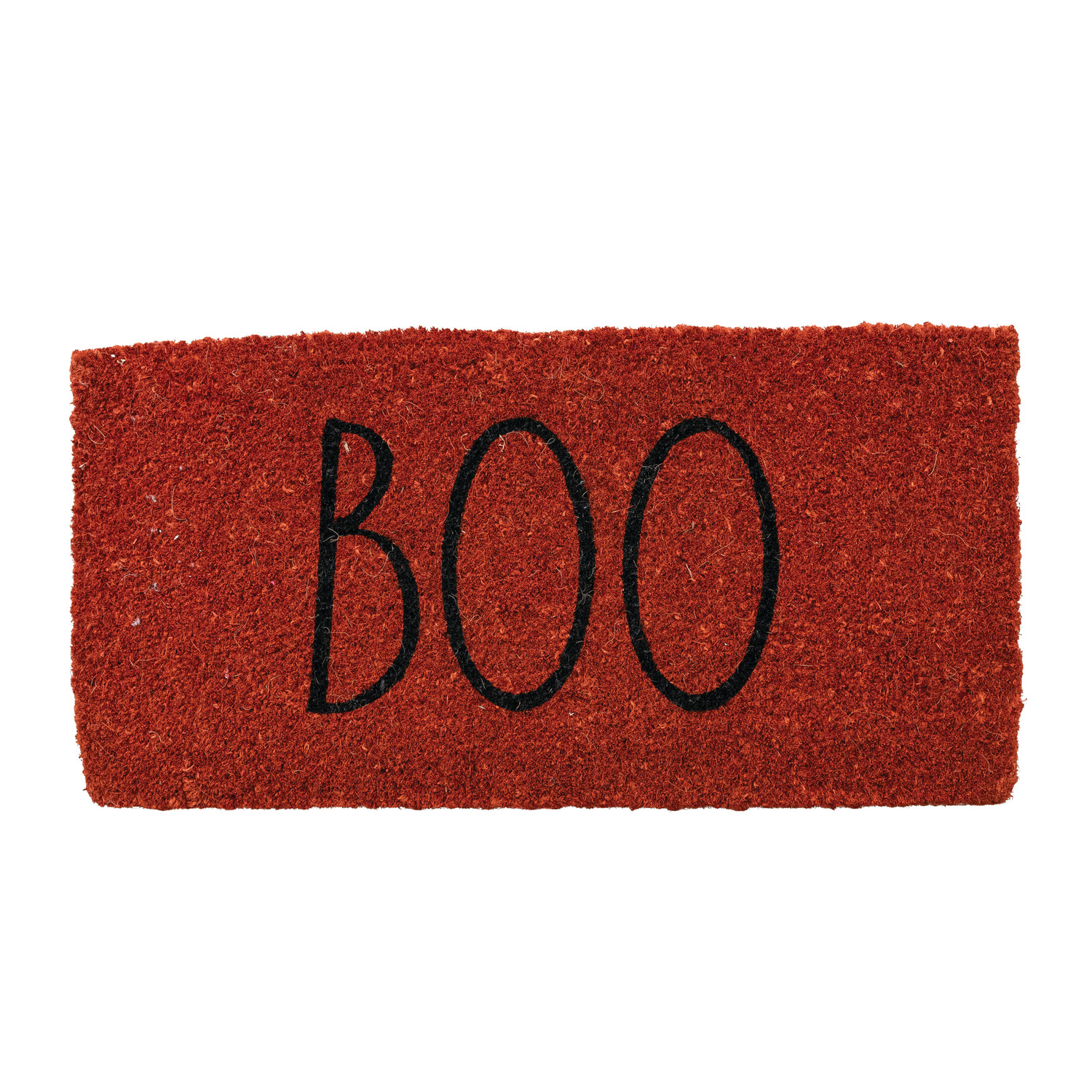 32"L x 16"W Natural Coir Doormat "Boo", Rust Color & Black