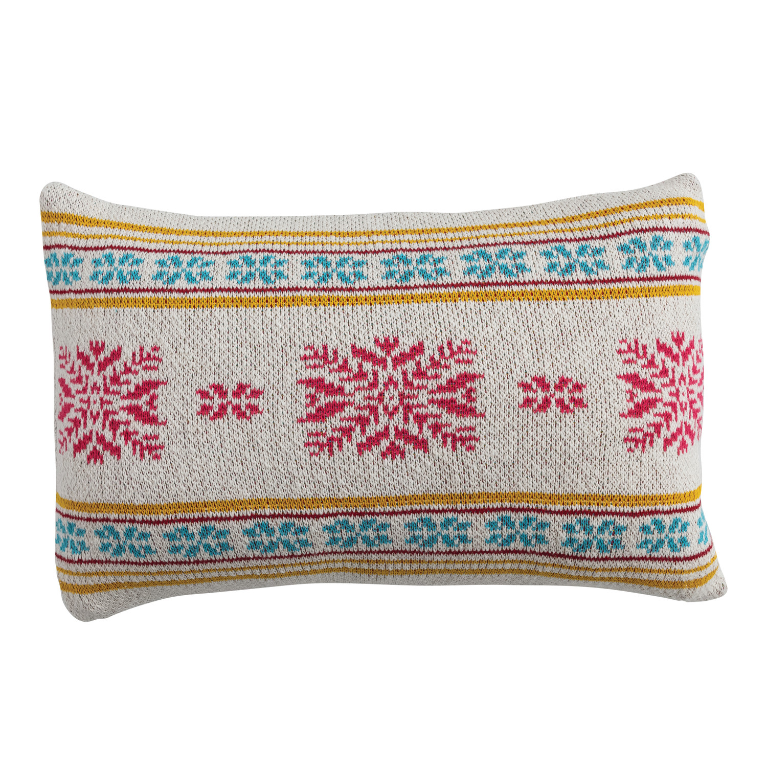 Catalog Name: 24"L x 16"H Cotton Knit Lumbar Pillow w/ Snowflake Pattern, Multi Color