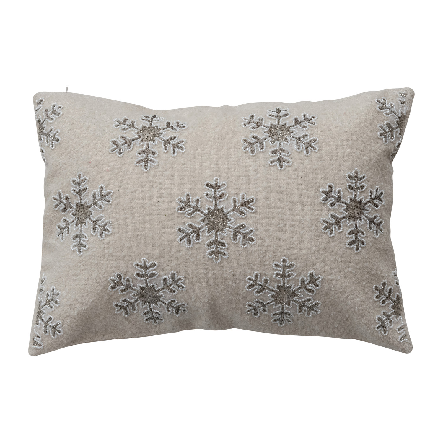 Catalog Name: 20"L x 14"H Cotton Blend Slub Lumbar Pillow w/ Beaded Snowflakes, Cream & Silver Finish
