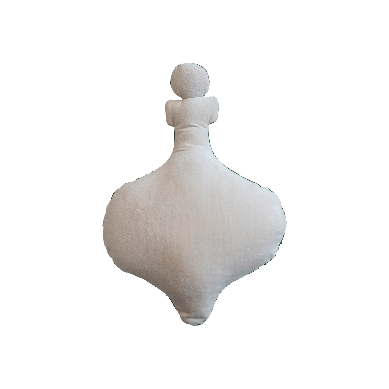 15"L x 10"W Cotton Velvet Ornament Shaped Pillow w/ Embroidery, Natural & Green