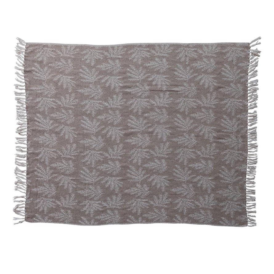 Woven Recycled Jacquard Blend Reversible Throw with Botanicals & Fringe