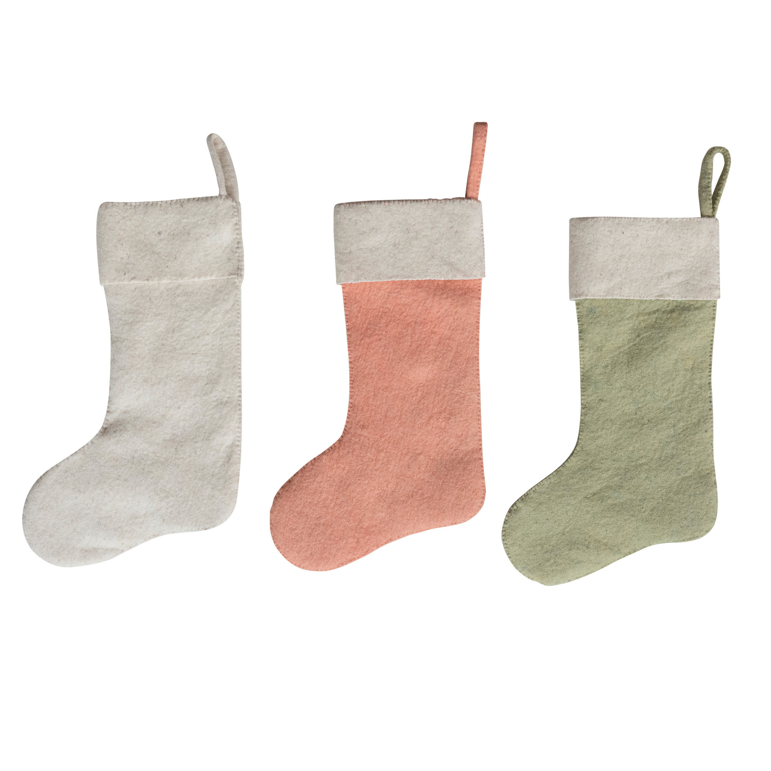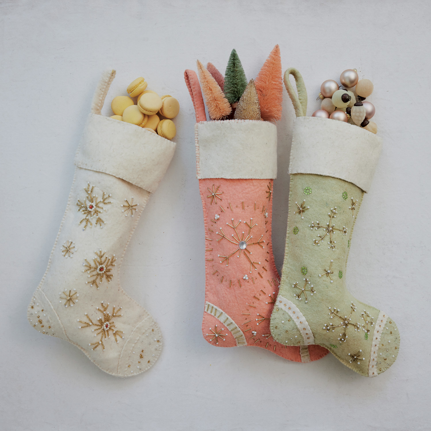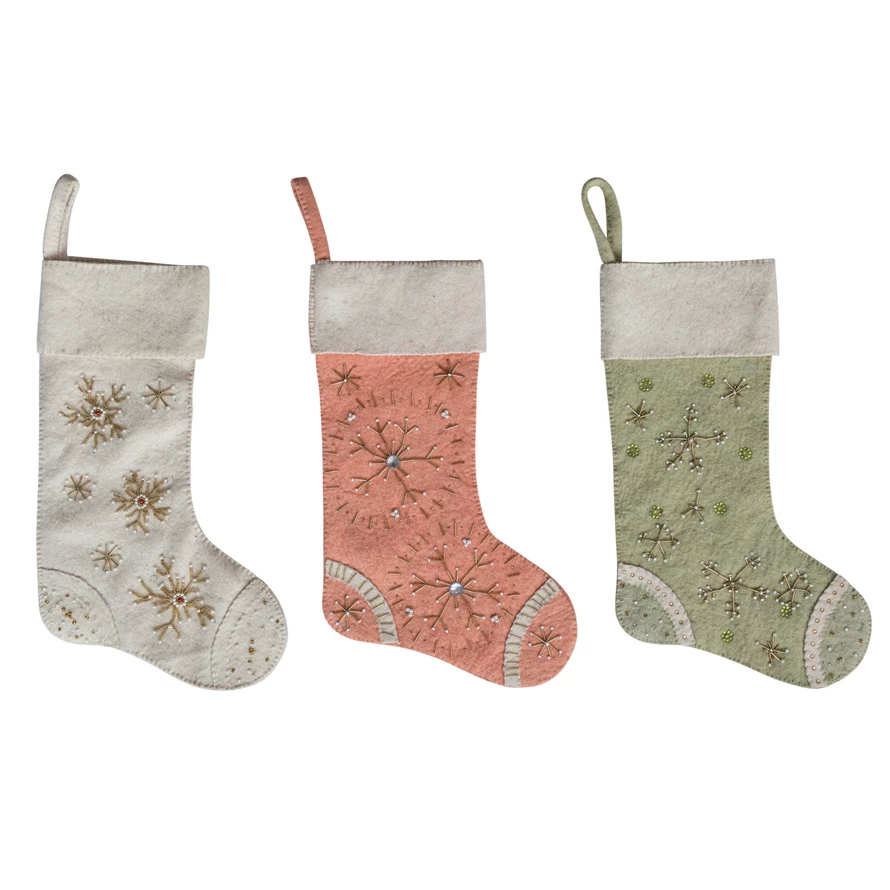 18"H Handmade Wool Felt Stocking with Embroidery & Beads, 3 Styles