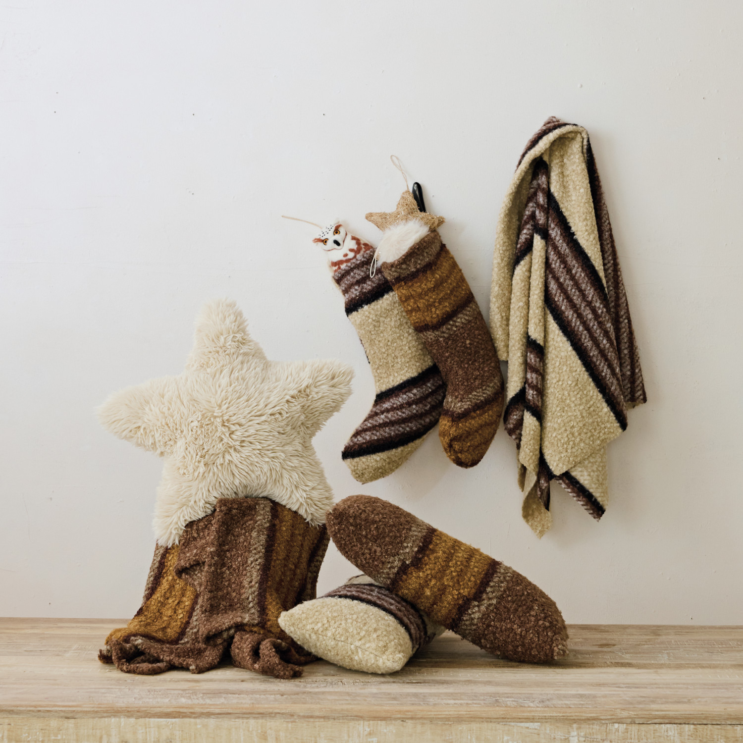Fabric Faux Sherpa Stocking with Stripes, 2 Styles