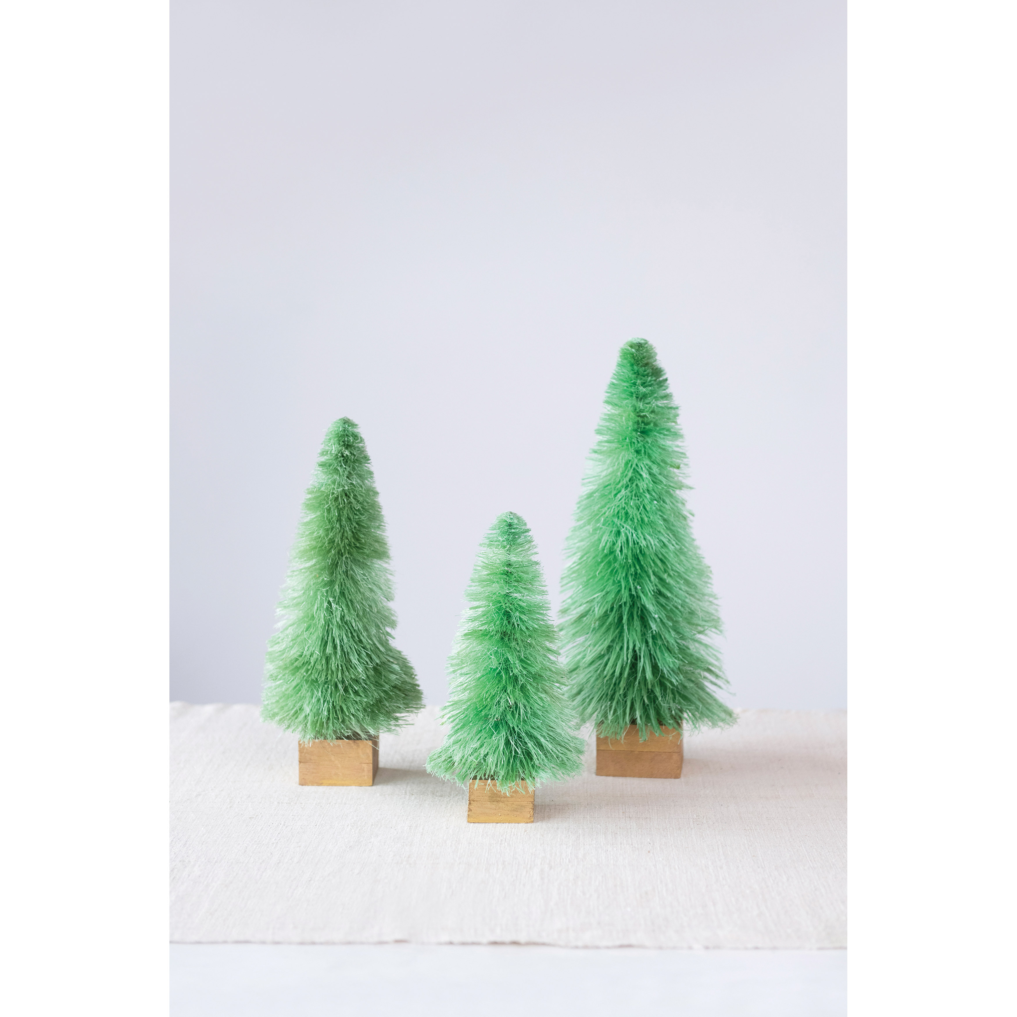 Sisal Bottle Brush Trees w/ Gold Finish Wood Bases, Spearmint Color, Set of 3