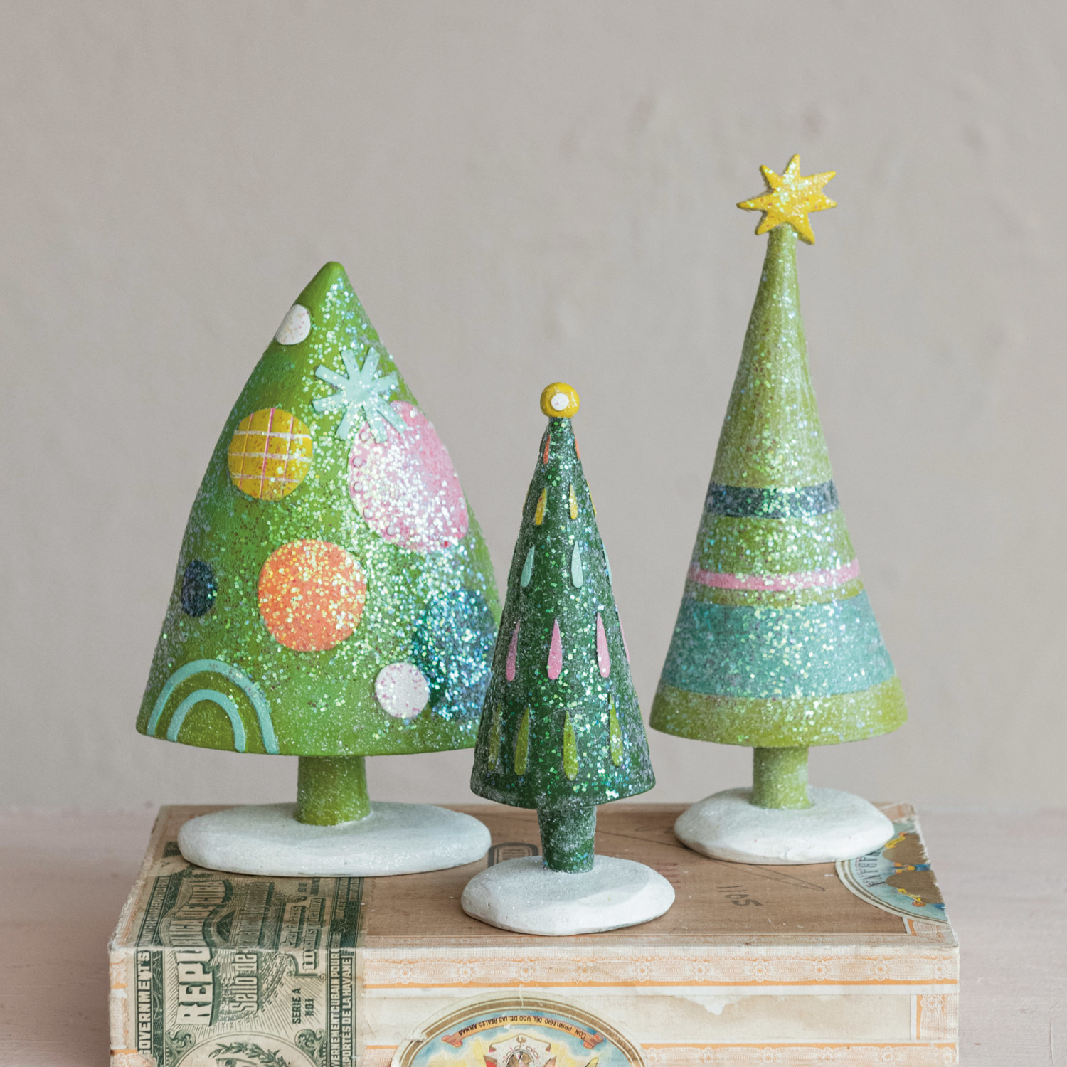 Catalog Name: 4-1/4"L x 2-3/4"W x 6-1/4"H Resin Christmas Tree w/ Dots & Glitter, Multi Color ©