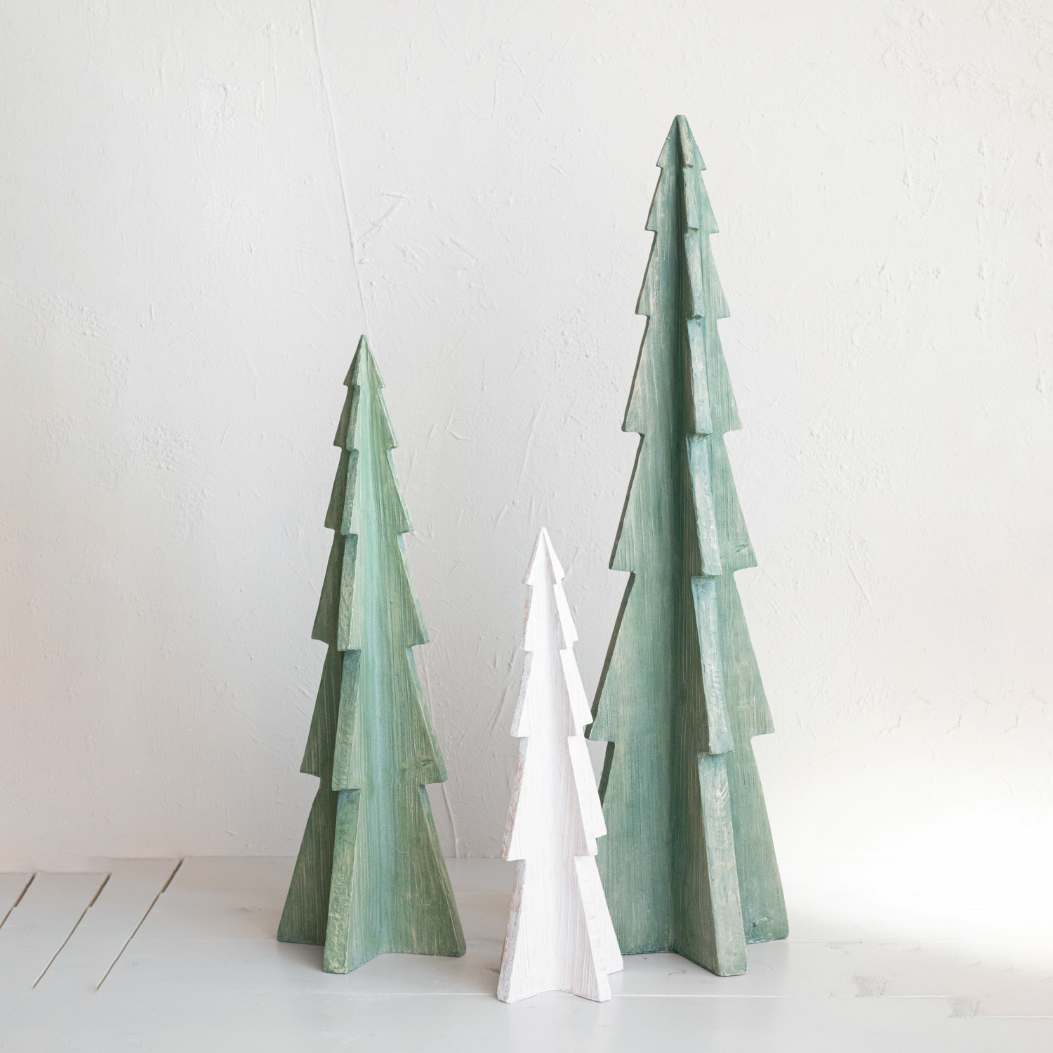 Catalog Name: 9-1/2" Round x 26-3/4"H Magnesia Tree, Wood Finish, Antique White, Truck Ship